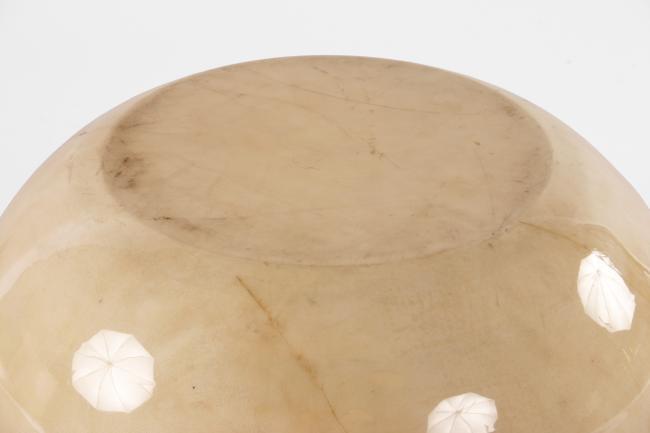 14h x 20dia inches, lacquered wood, original good condition, scratches on base