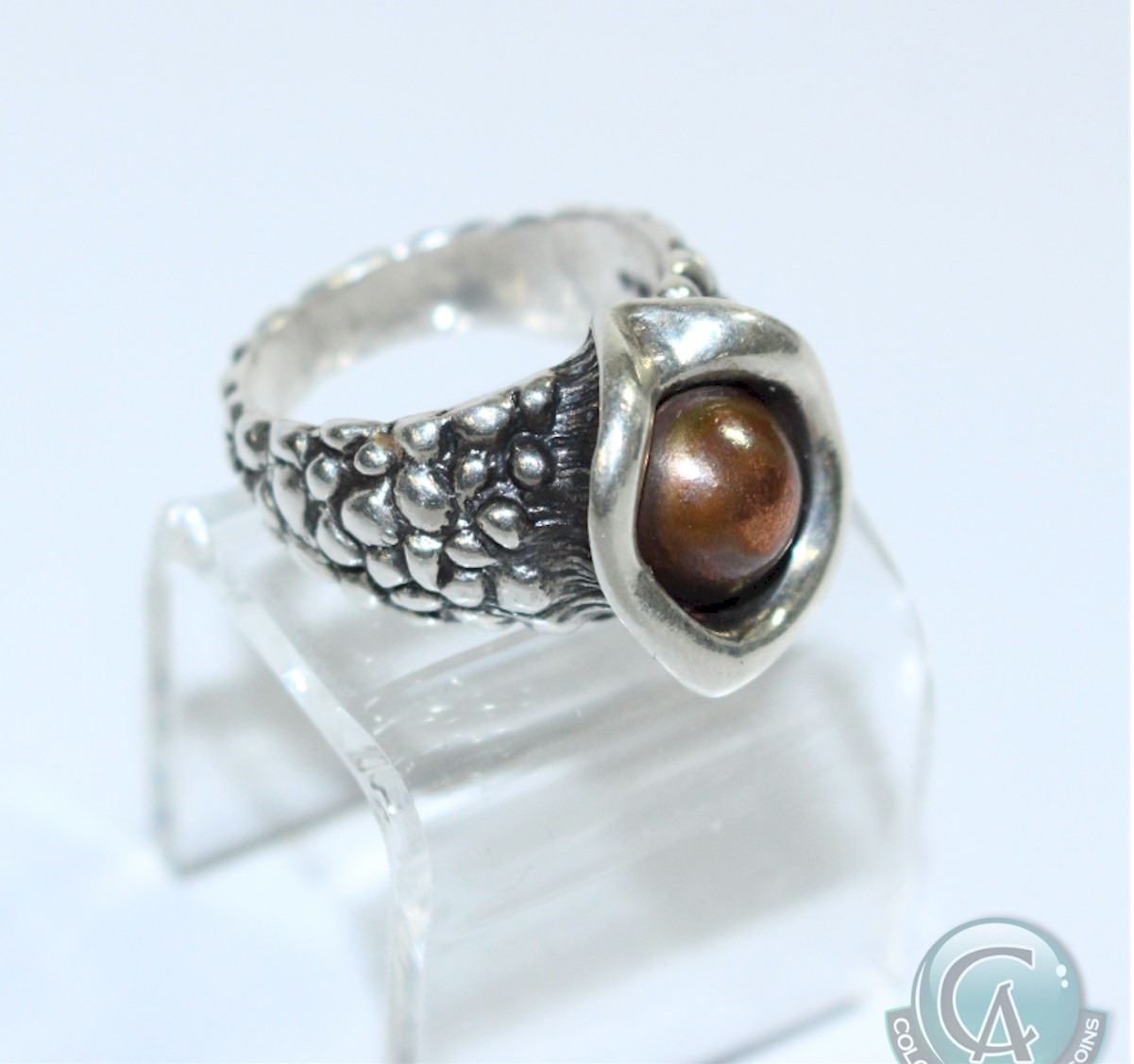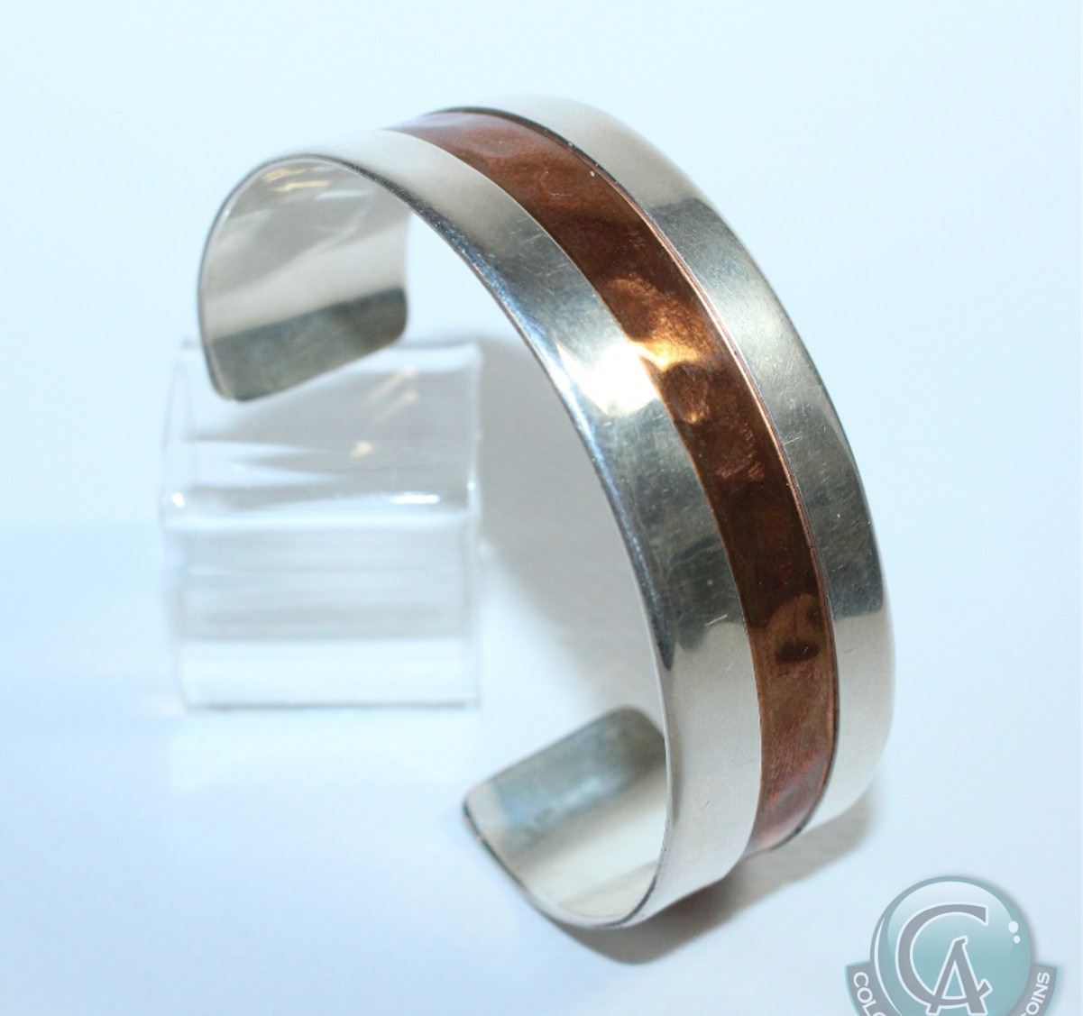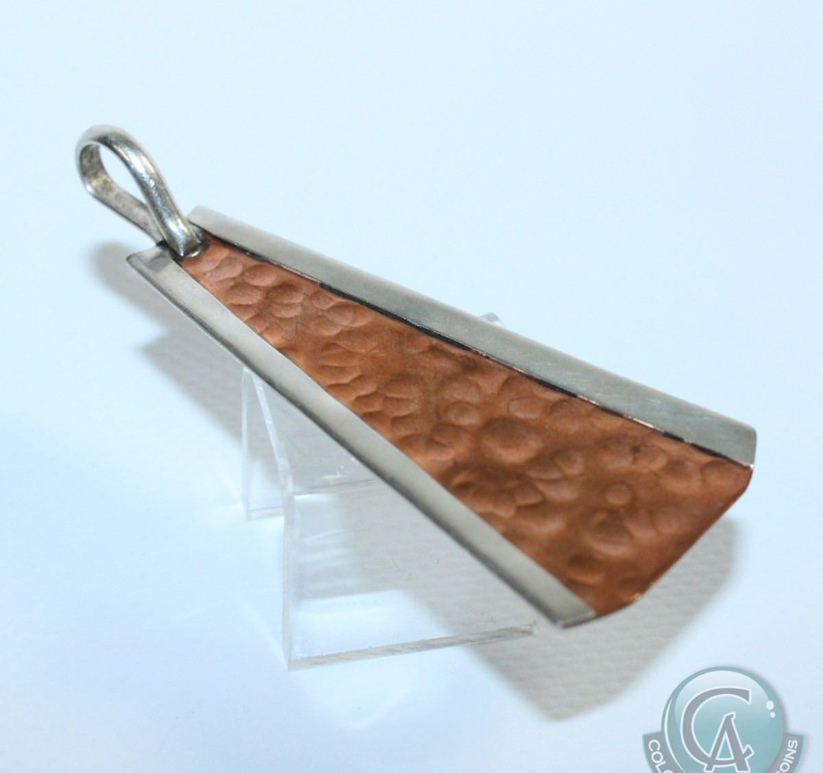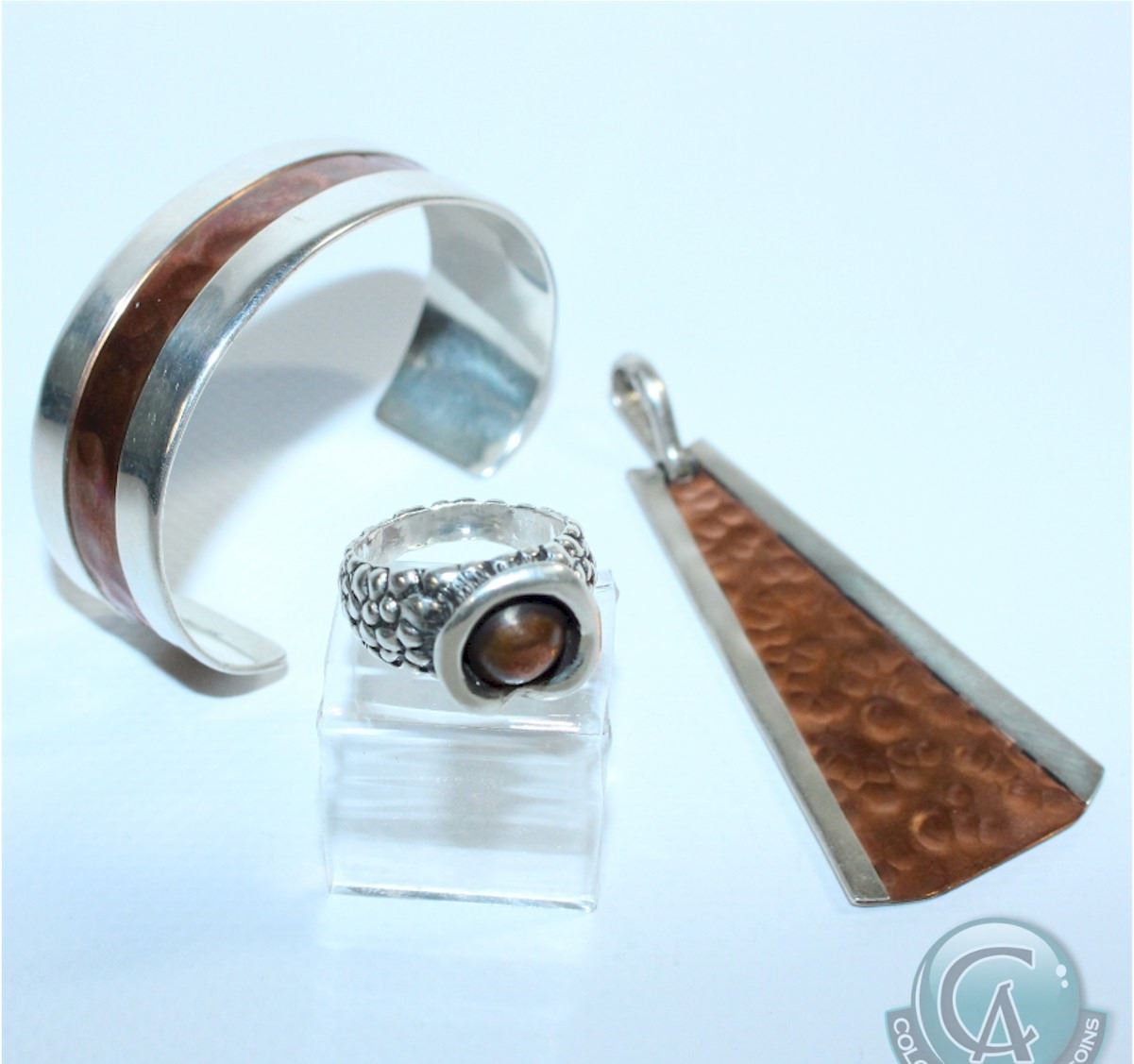 Karyn Chopik Studio Sterling Silver with Copper Accent Jewellery Lot. This lot contains a Large Pendent, Cuff Bracelet, and Ring - Size 8. 3pcs.