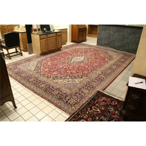 KASHAN rugs and carpets are among the finest quality carpets, and this rug is no exception. It is full of intricate and meticulously created patterns for which these rugs are so highly sought after. KASHAN carpets and rugs have the greatest curvature and visibility among those of the cities in central of IRAN. They all have similar patterns--a single medallion in the center and Persian floral motifs, including arabesques and flower-stems, palmettos, rosettes, blossom and leaf motifs, forming one of the densest patterns. This excellent rug measures 9? 10? x 13? 7? and is a high quality rug at a very modest price.