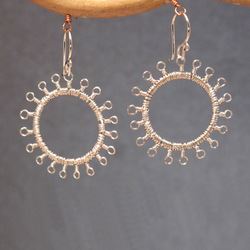 Metal: RoseGoldTiny loops wrapped around hammered circles, about 1-1/2". Available in either 14K gold-filled, rose gold-filled, or sterling silver. All jewelry is entirely handmade in our studio in New York.