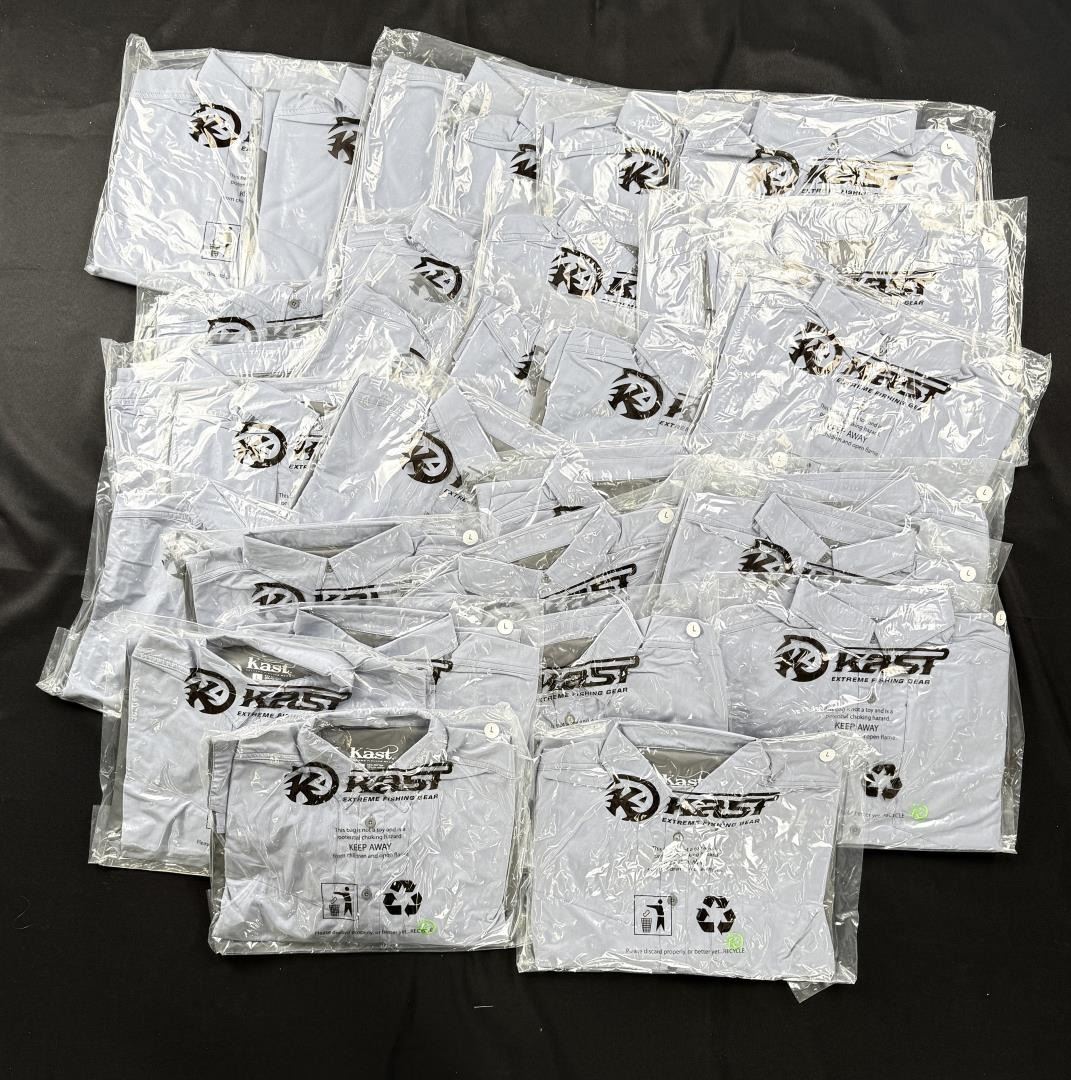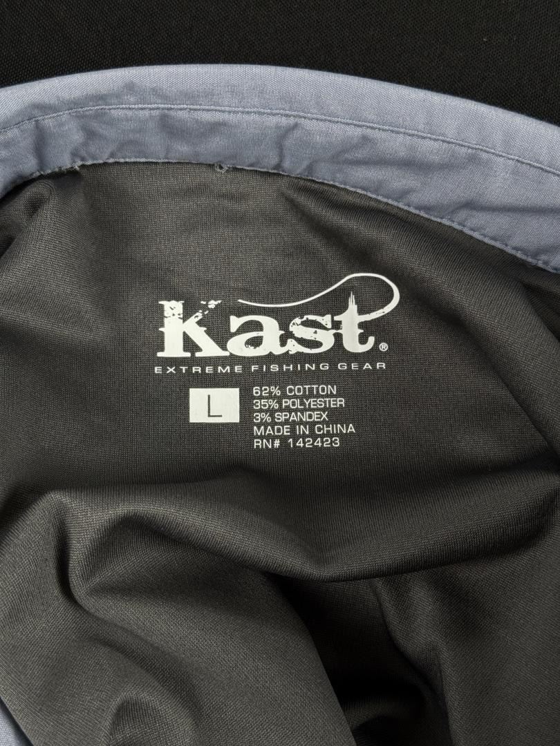 30 dead stock guide shirts. Size large. The Kast Recon Guide shirt blend style and performance. The sides and arms are vented and the fabric provides UPF 30 protection. There are hidden zippered pockets on either side of the chest, and a button mid-arm in case you decide to roll up the sleeves.