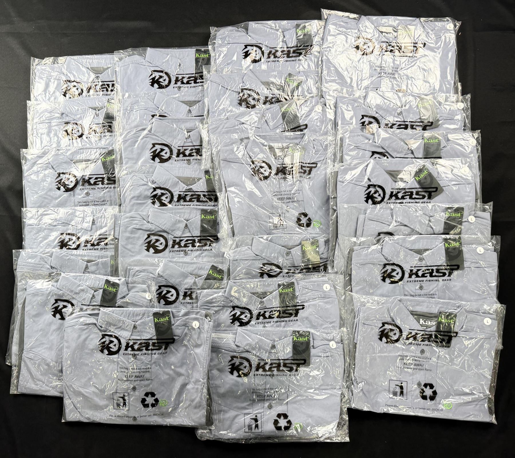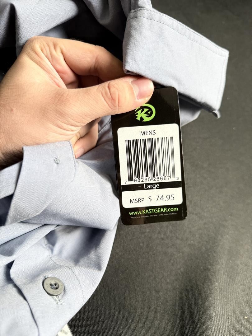 29 dead stock guide shirts. Size large. The Kast Recon Guide shirt blend style and performance. The sides and arms are vented and the fabric provides UPF 30 protection. There are hidden zippered pockets on either side of the chest, and a button mid-arm in case you decide to roll up the sleeves.
