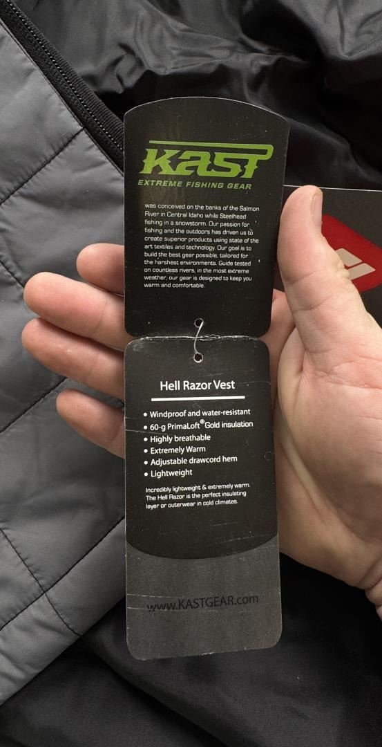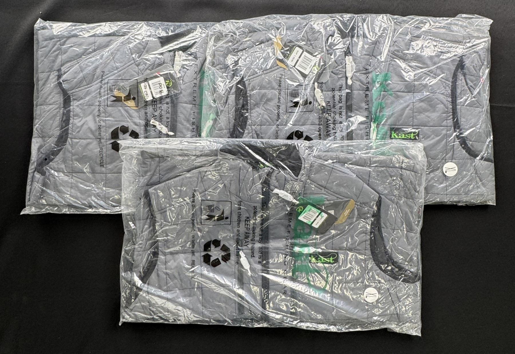 Three dead stock grey vests. Size XL. The Kast Gear Hell Razor Vests are the ultimate in performance and comfort. These vests are the perfect insulating layer or outerwear in cold climates. These vests utilize Primaloft 60g ONE insulation that allows them to be warm yet lightweight. These jackets are windproof, water resistant, and breathable.