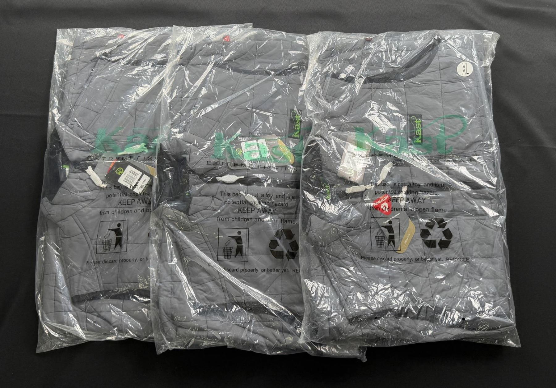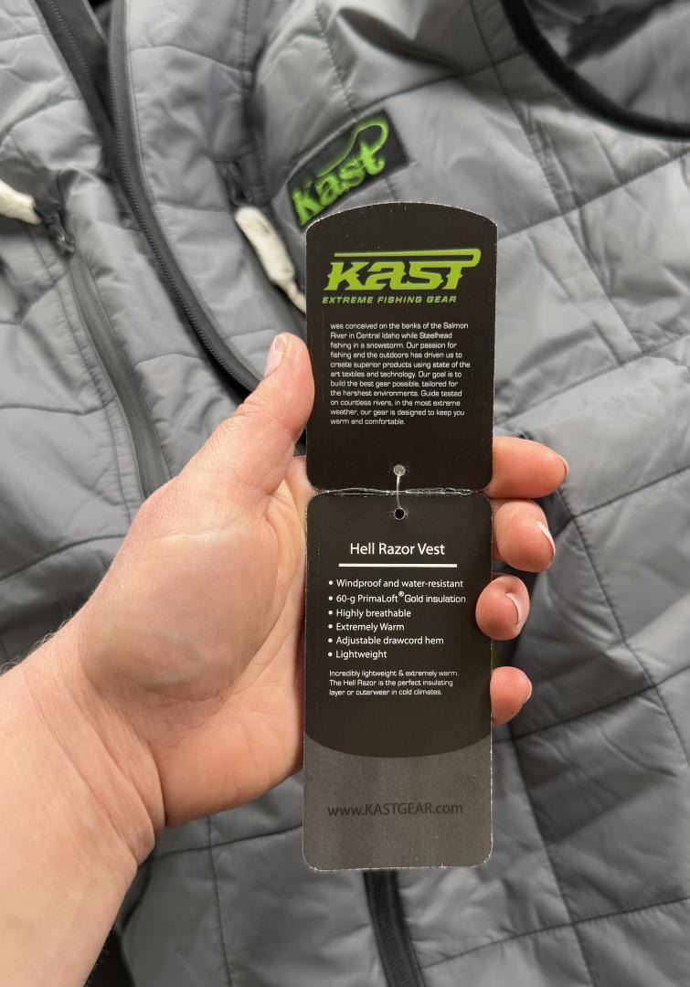 Three dead stock grey vests. Size XL. The Kast Gear Hell Razor Vests are the ultimate in performance and comfort. These vests are the perfect insulating layer or outerwear in cold climates. These vests utilize Primaloft 60g ONE insulation that allows them to be warm yet lightweight. These jackets are windproof, water resistant, and breathable.