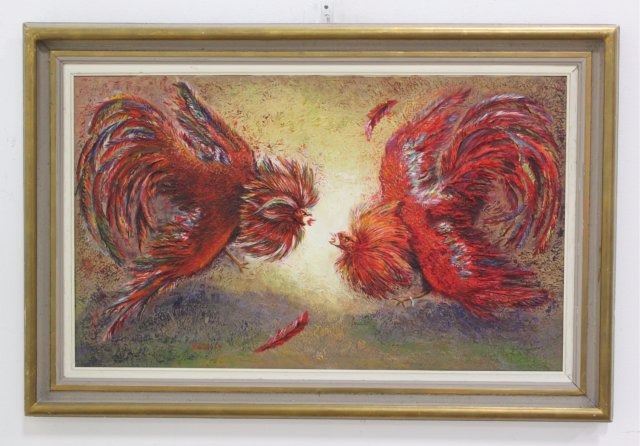 Oil on canvas. Signed lower left and dated  1964 rear. Approx. 23" H x 39" W unframed, 31  1/2" H x 46 1/2" W framed. From the  collection of Mr. Sydney Edelstein.