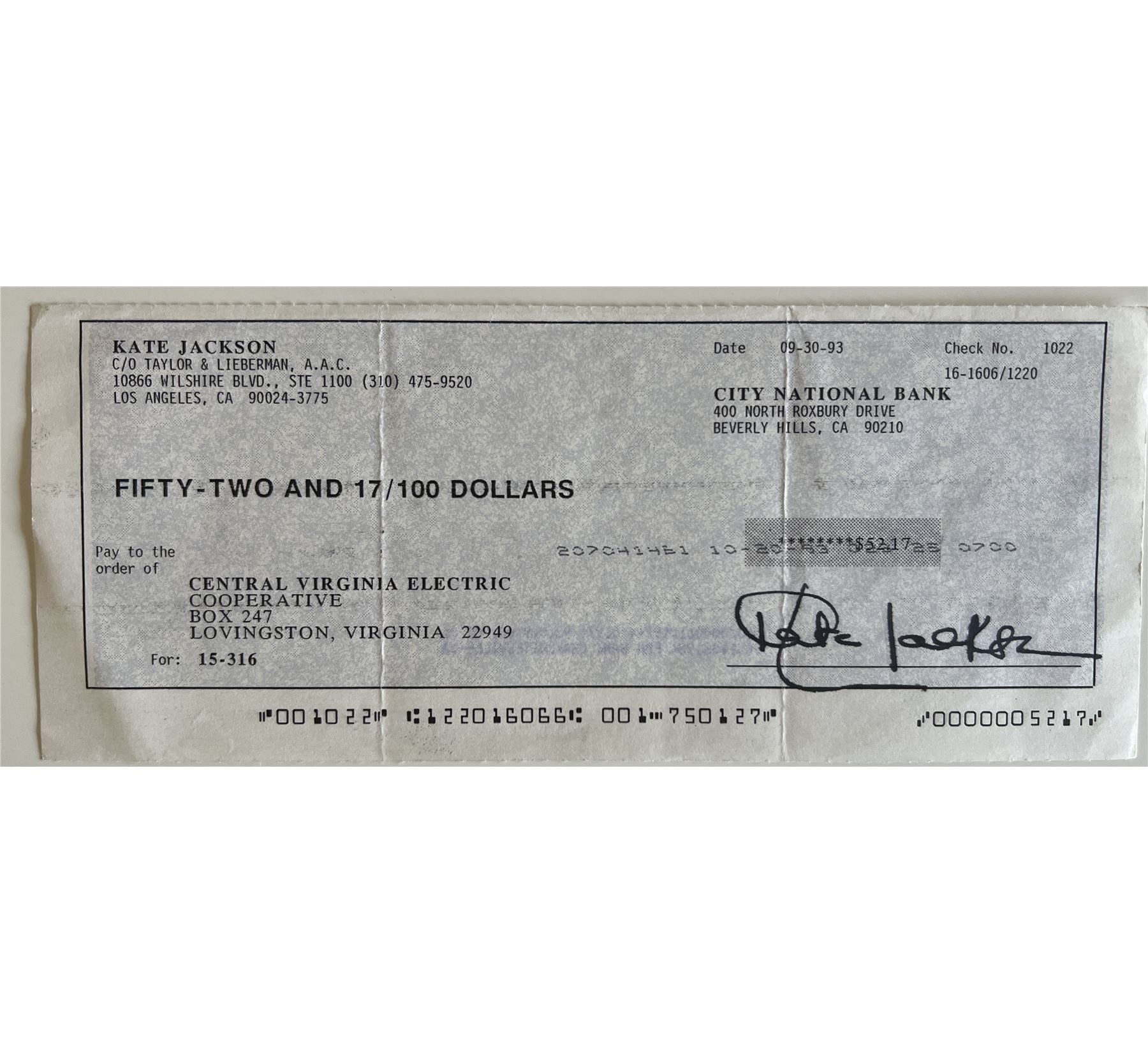 Kate Jackson signed check. GFA authenticated. 3x8 inches
