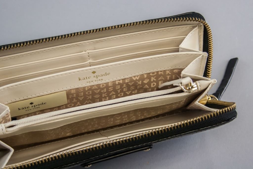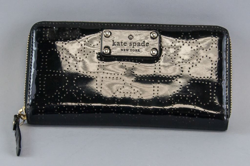 Black clutch purse/wallet. Of shiny black material. With "kate spade" label and tags. Not authenticated. 10 x 20 cm. 192 grams.