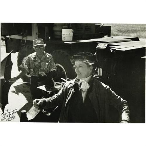 <B>Katharine Hepburn Signed Photo.</B></I> A b&w 13.5" x 9.5" photo of Hepburn on an unknown set, inscribed to friend/make-up artist Emile LaVigne in black ink. In Excellent condition, with a studio stamp en verso. <I> From the Estate of Emile LaVigne.</B></I><BR><BR><b>Shipping:</b> Flat Material, Small (<a target="_blank" href="http://www.heritageauctions.com/common/shipping.php">view shipping information</a>)