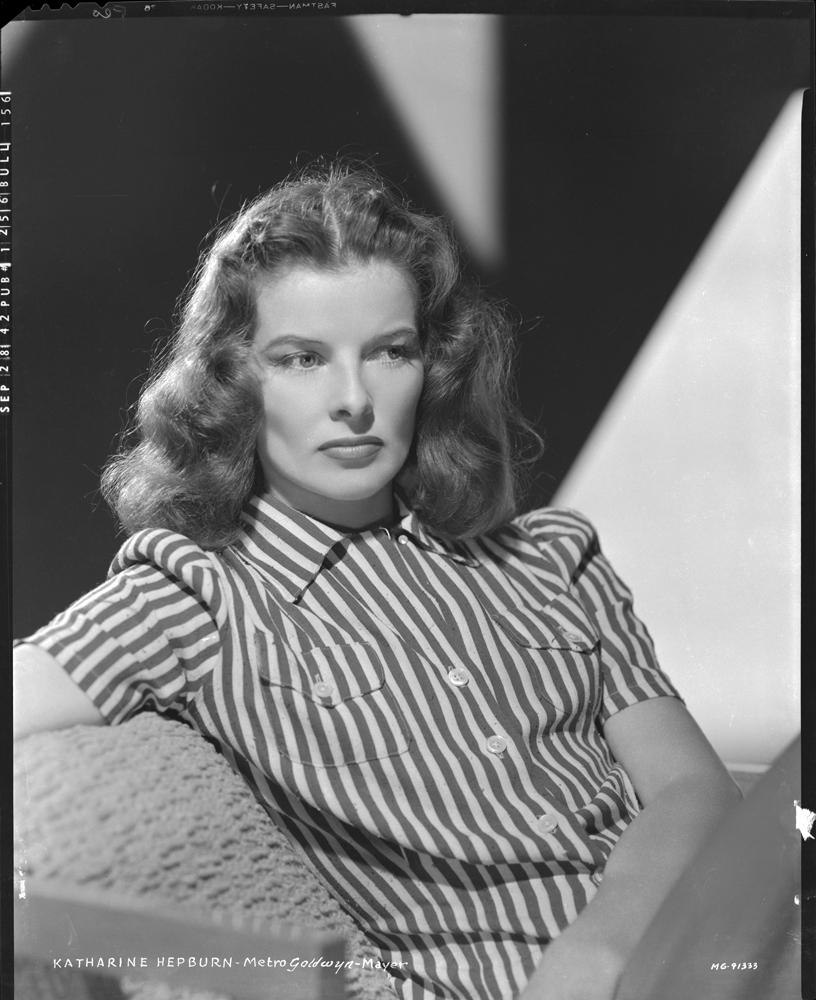 (M-G-M, 1941) Black-and-white 8 x 10 in. camera negative on safety film of Katharine Hepburn from Keeper of the Flame by Clarence Sinclair Bull; with SEP 28 42 PUB 1256 BULL 156 stamped and EASTMAN-SAFETY-KODAK stamped on the border, KATHARINE HEPBURN - METRO-GOLDWYN-MAYER, MG-91333 in India ink and retouching. Very fine.