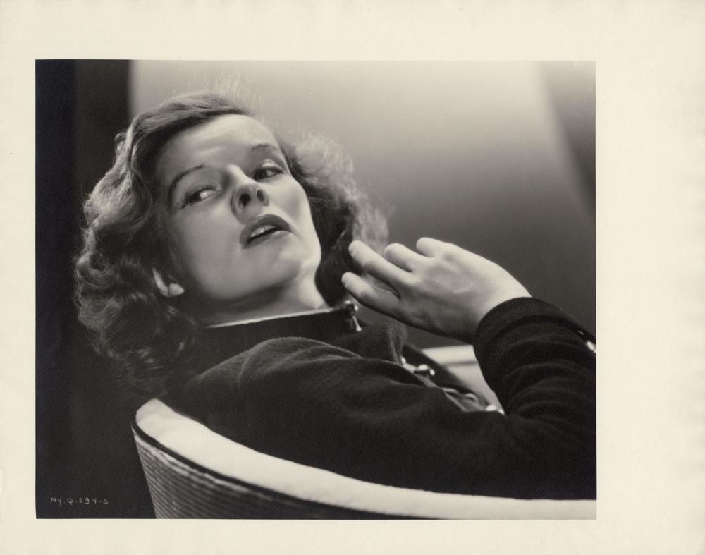 (RKO, 1936) Three silver bromide matte 11 x 14 in. file prints of Katharine Hepburn from A Woman Rebels by Ernest A. Bachrach; with portrait number NY-Q-290, NY-Q-293-A and NY-Q-294-A in India ink on the negative. From the personal collection of the photographer. Very fine; with light rippling at the edges.