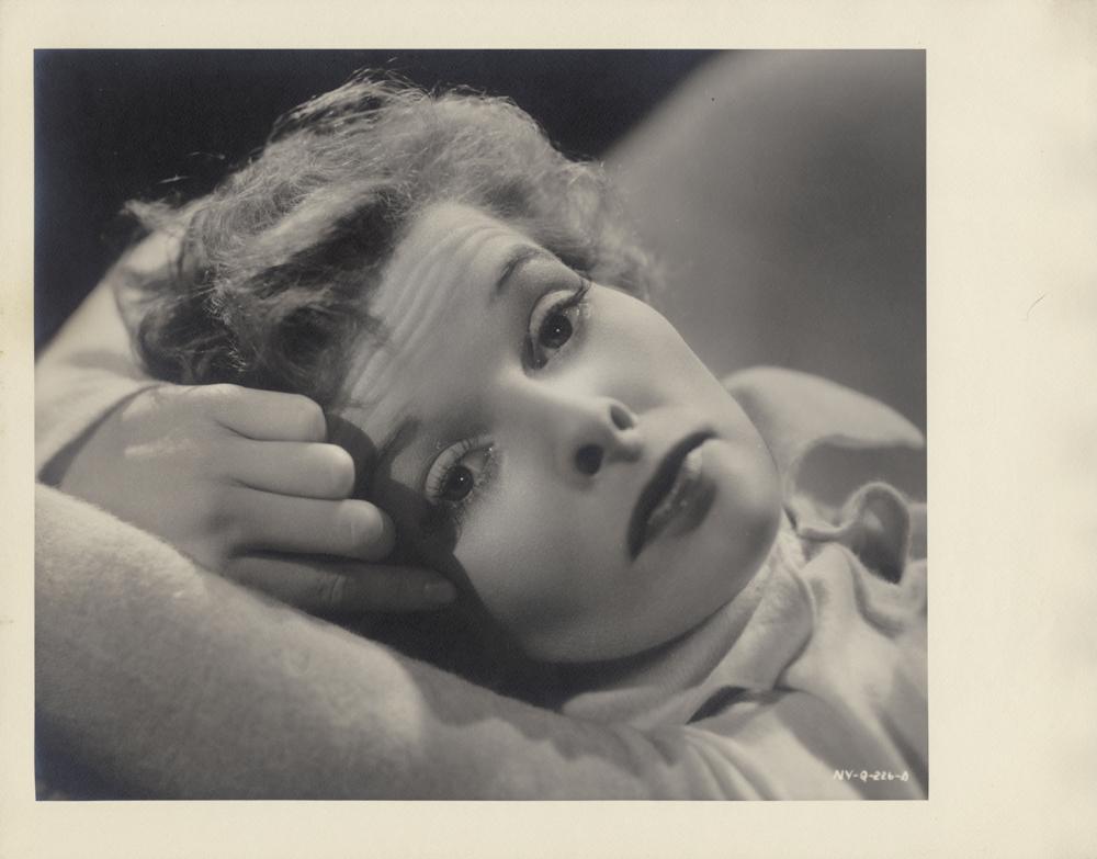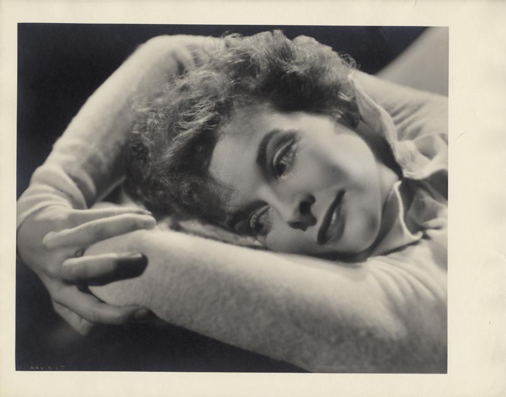 (RKO, 1935) Two silver bromide matte 11 x 14 in. file prints of Katharine Hepburn from Alice Adams by Ernest A. Bachrach; with portrait number NY-Q-222-A and NY-Q-226-A in India ink on the negative. From the personal collection of the photographer. Very fine and Excellent; with ¼ in. closed tear at the upper right edge to one.
