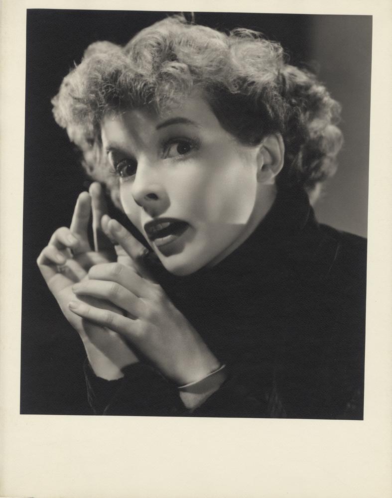 (RKO, 1935) Two silver bromide matte 11 x 14 in. file prints of Katharine Hepburn from Alice Adams by Ernest A. Bachrach. From the personal collection of the photographer. Very fine and Excellent; with light dust shadow at the right edge to one.