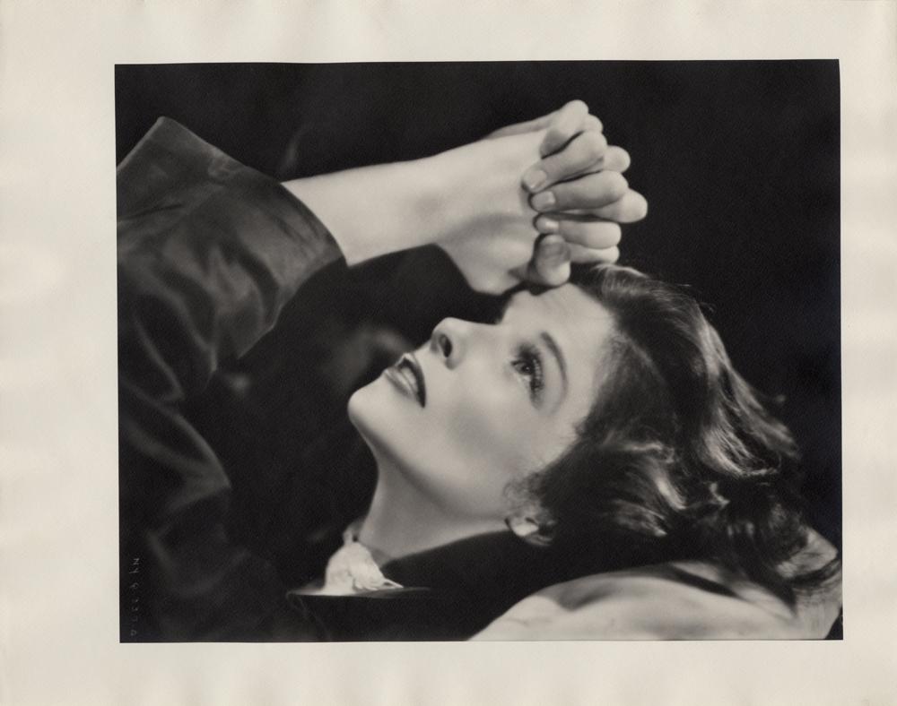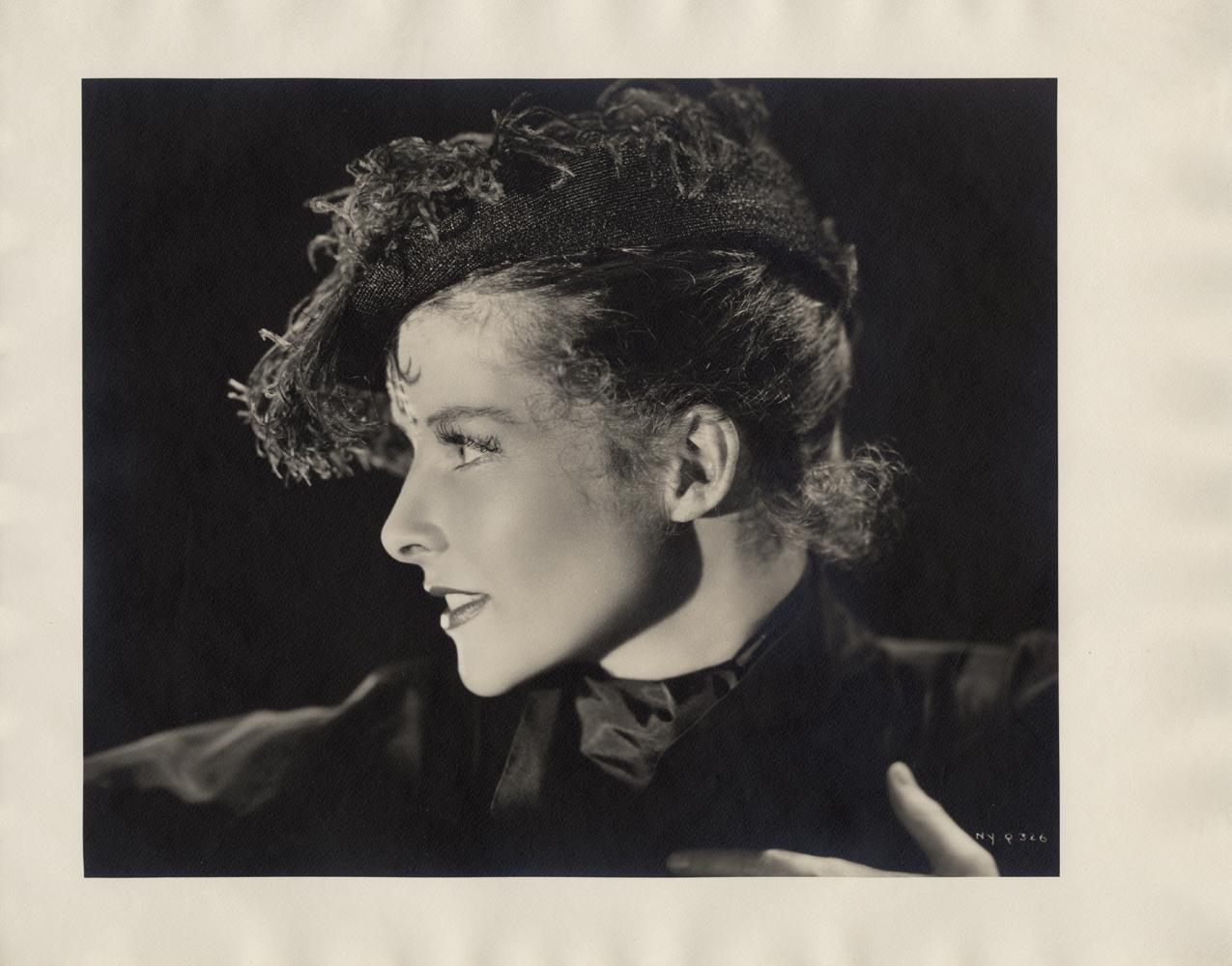 (RKO, 1936) Three silver bromide matte 11 x 14 in. file prints of Katharine Hepburn from Mary of Scotland by Ernest A. Bachrach; with portrait number NY-Q-326 and NY-Q-289-A in India ink on the negative. Very fine; with rippling at the edges.