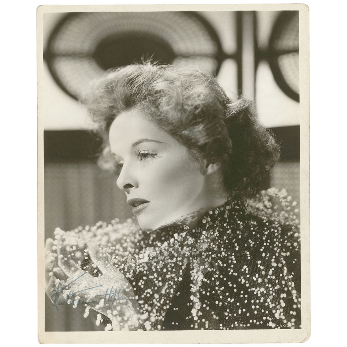 Vintage matte-finish 8 x 10 head-and-shoulders Bachrach photo, signed in fountain pen. In fine condition, with light to moderate contrast to signature and some light corner creases. Hepburn famously refused to sign any type of photo except for friends and family.