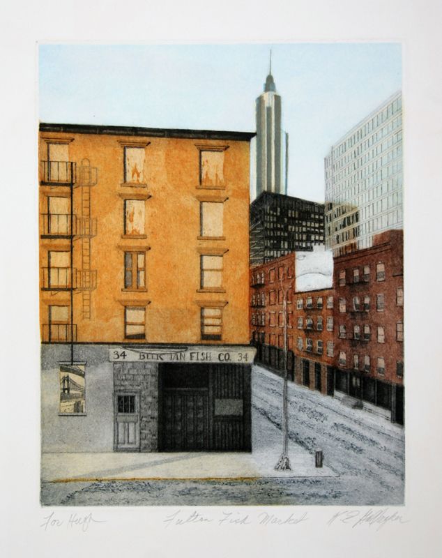 Katherine Gallagher, Fulton Fish Market, Aquatint Etching