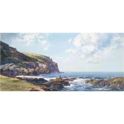 Kathleen Isabella Mackie ARUA (1899-1996) SEA CLIFFS WITH GULLS ON A FINE DAY signed with i...
