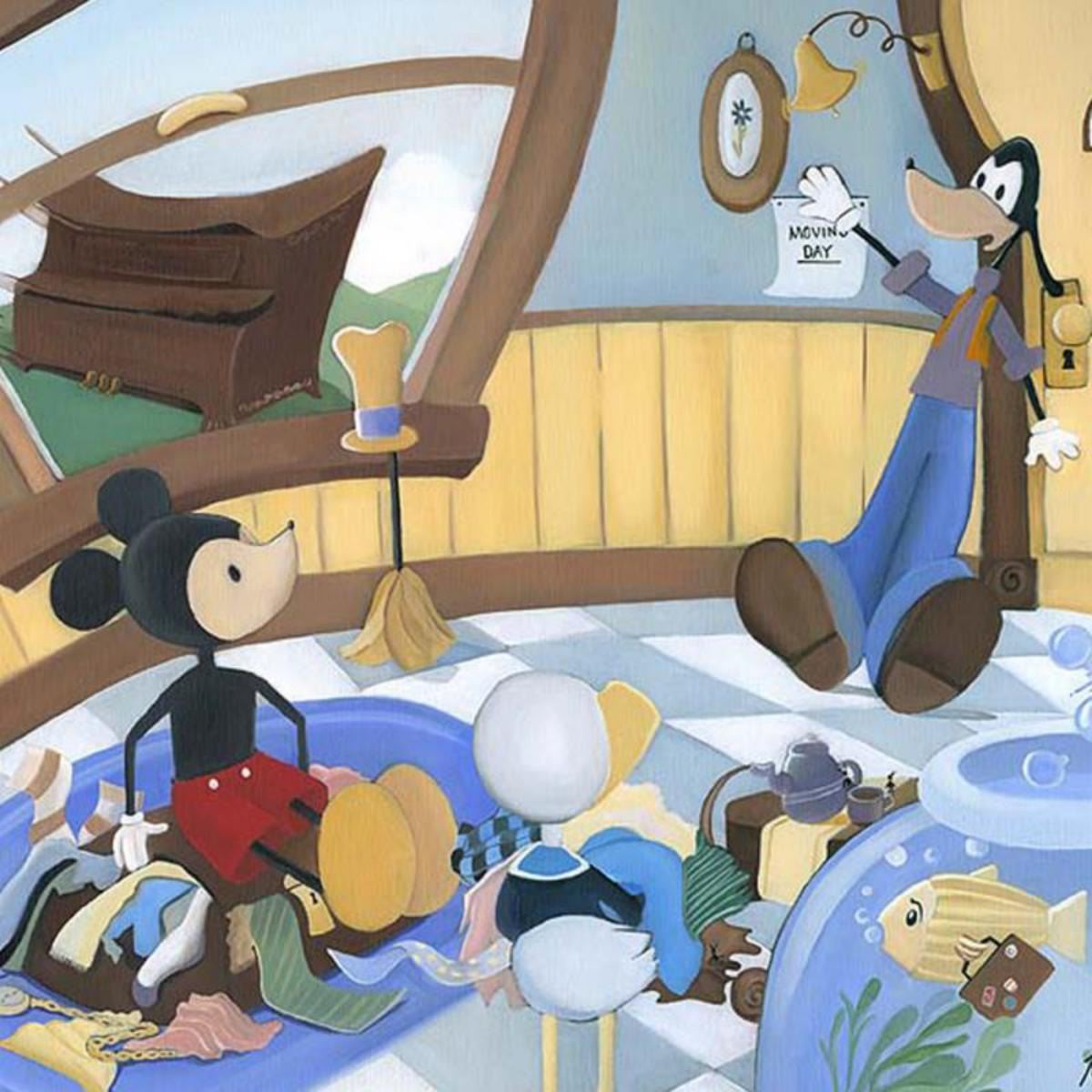 "Moving Day" is a limited edition giclee on gallery wrapped canvas, numbered 42/95 and hand signed by Katie Kelly! This piece is licensed by Disney Fine Art. Includes Certificate of Authenticity! Measures approx. 24" x 20" (image). Reference #: 216429