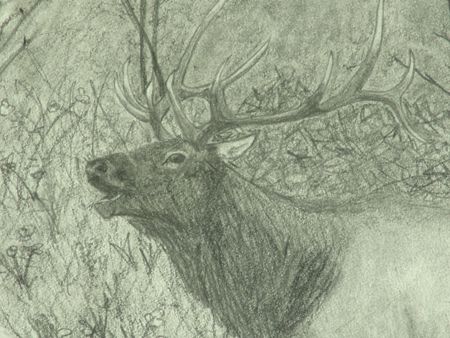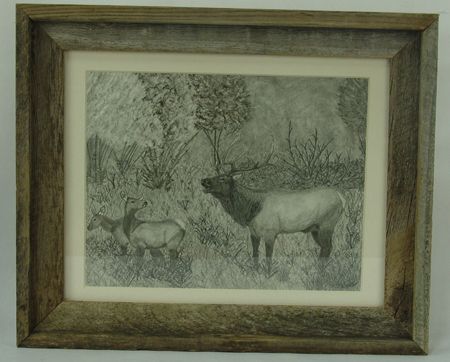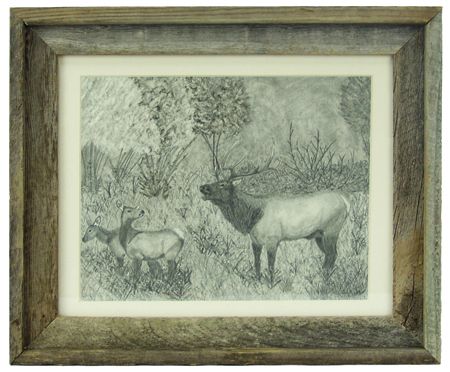 Early 2000s, Fine signed original pencil on paper - "Elk Family." Very good condition. 8" x 11" (13" x 16" framed)