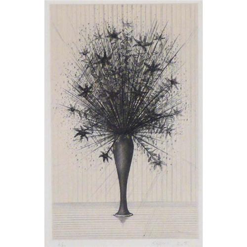 7613 Kato Etching "Flowers on the Mirror A" 6/20 Signed lower right 9" x 5 1/2"