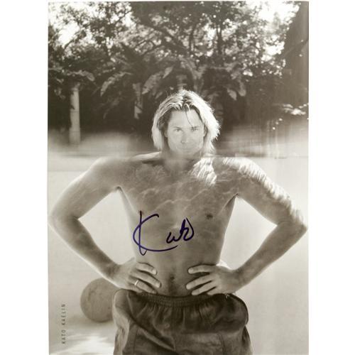 <B>Kato Kaelin Signed Magazine Page.</B></I> A b&w 9.5" x 13.5" magazine page bearing a full-page photo of the infamous Kaelin, signed by him in blue marker. In Excellent condition with mild wear.<BR><BR><b>Shipping:</b> Flat Material, Small (<a target="_blank" href="http://www.heritageauctions.com/common/shipping.php">view shipping information</a>)