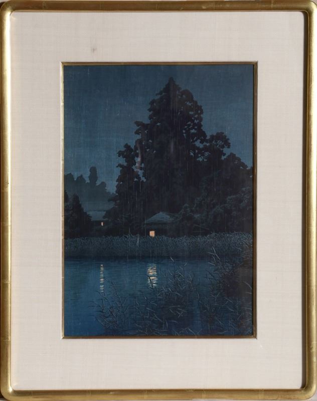 Kawase Hasui, Night Rain at Omiya, Woodblock