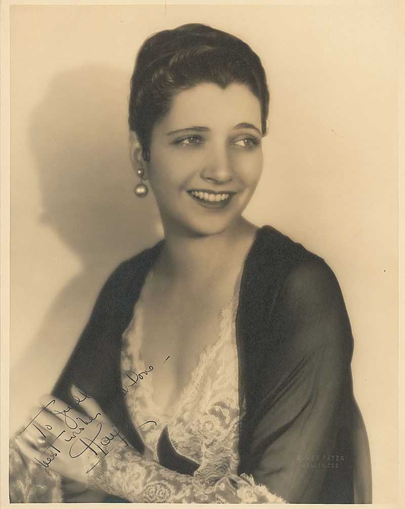 Gorgeous vintage matte-finish 11 x 14 photo of Francis in a lace top, signed and inscribed in fountain pen, “To Juell—best wishes and love—Kay.” Blindstamped in the lower right by famed Hollywood photographer Elmer Fryer. In fine condition, with two small tears to the top edge.