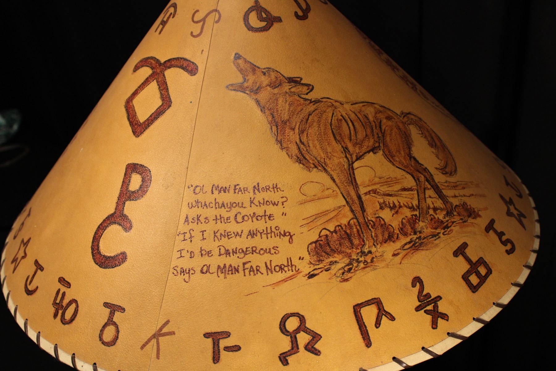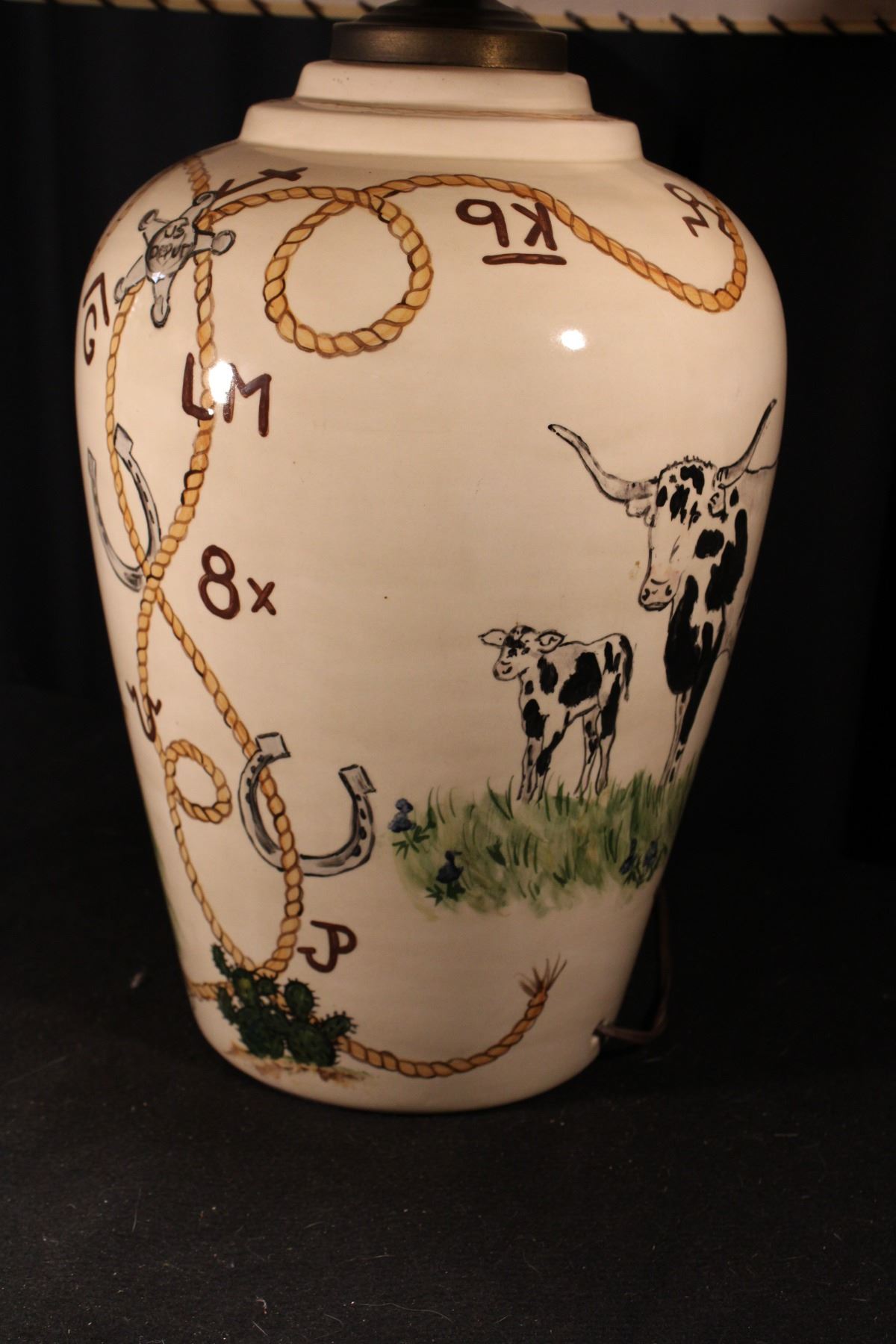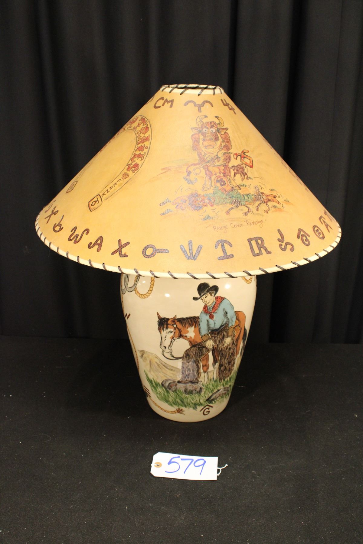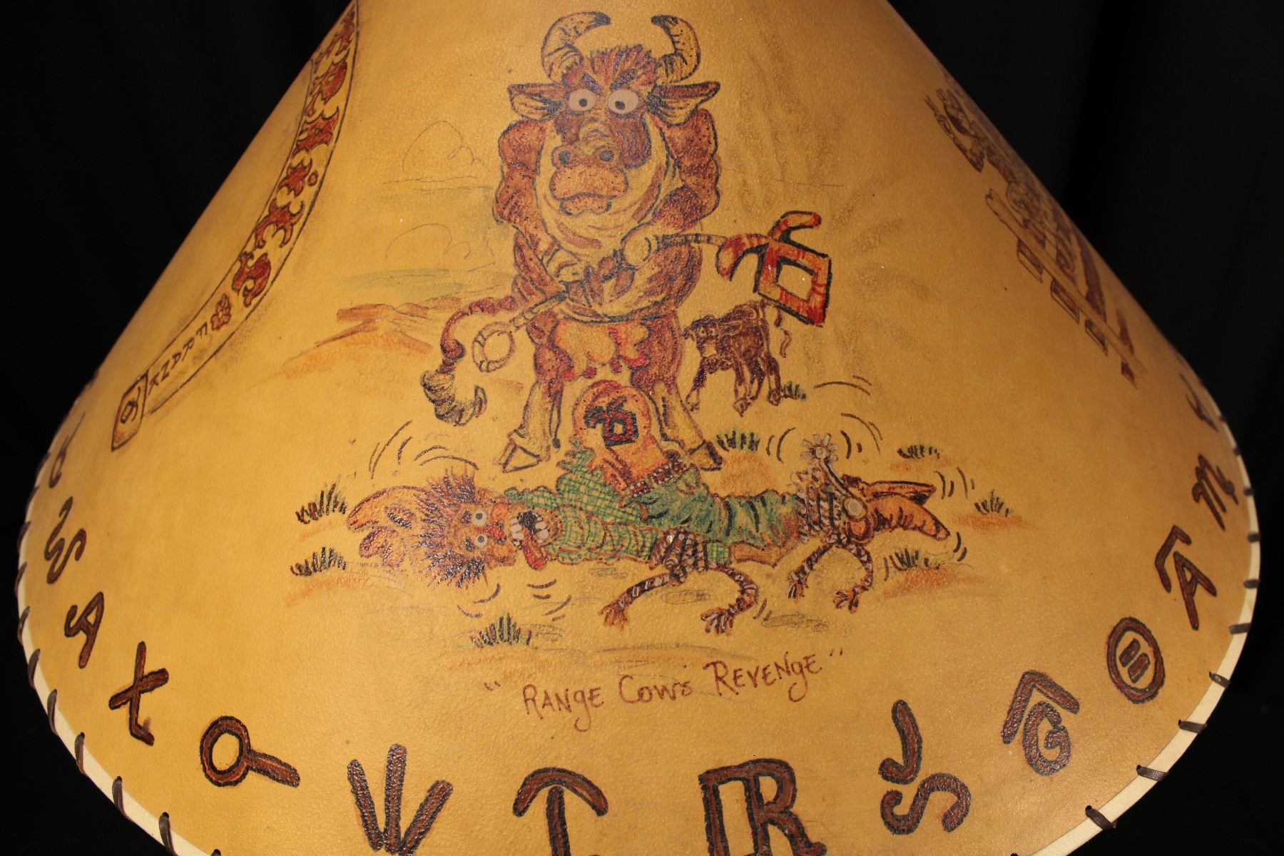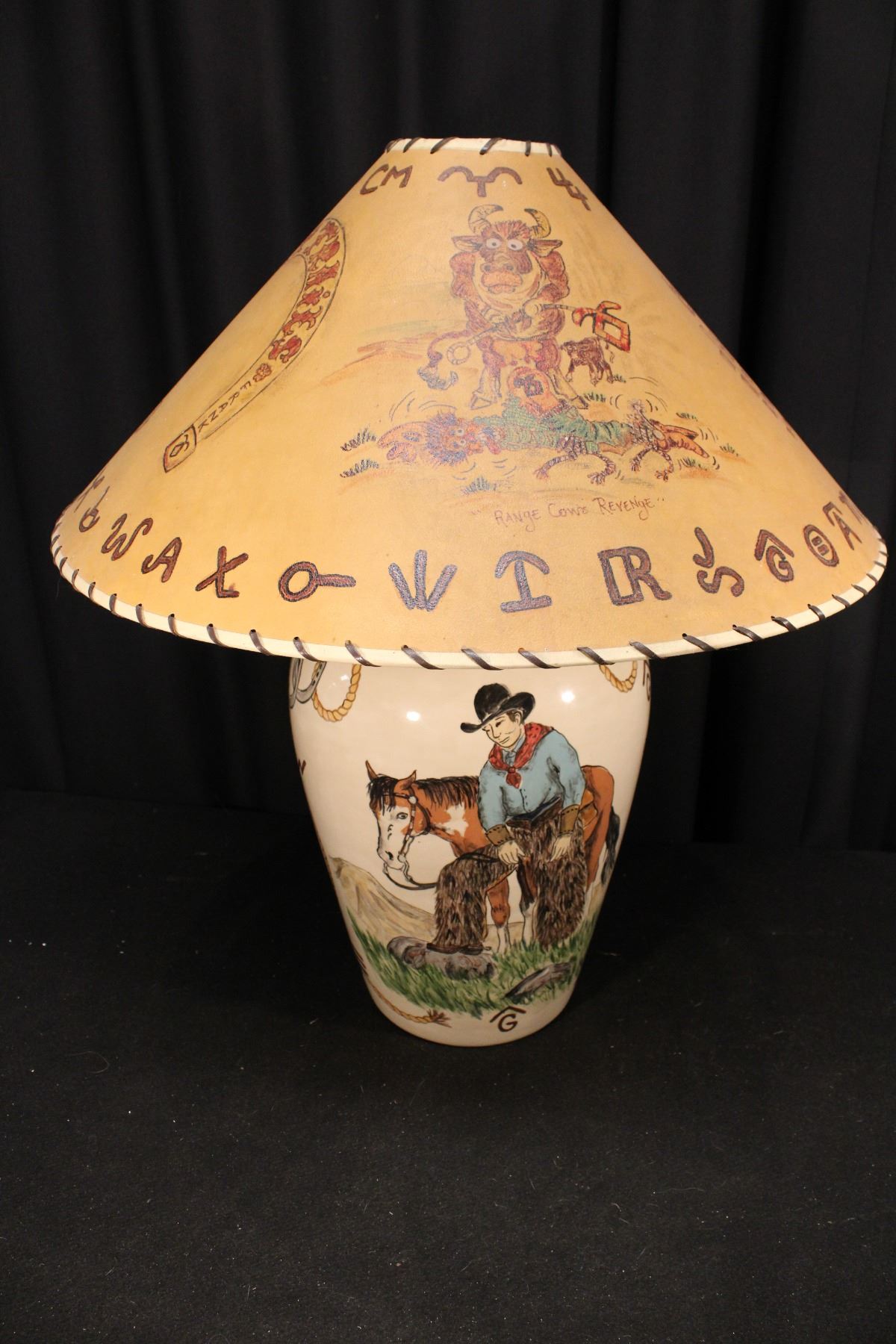 Western motif artists signed table lamp w/ custom painted shade (Donnie Gay's mother)