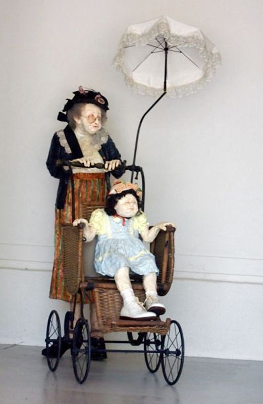 Kay Ritter, Nanny and Stroller, Mixed Media Sculpture with Fabric and Papercasting
