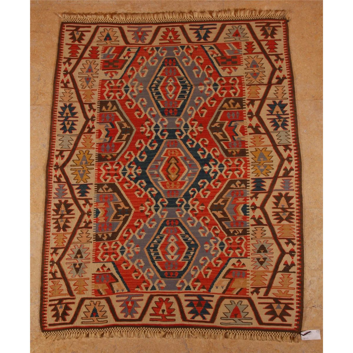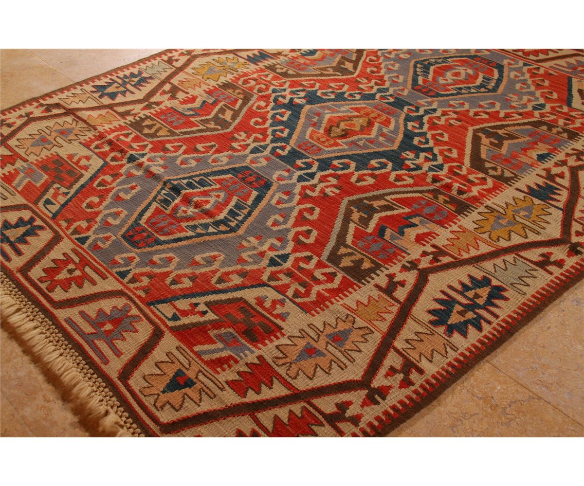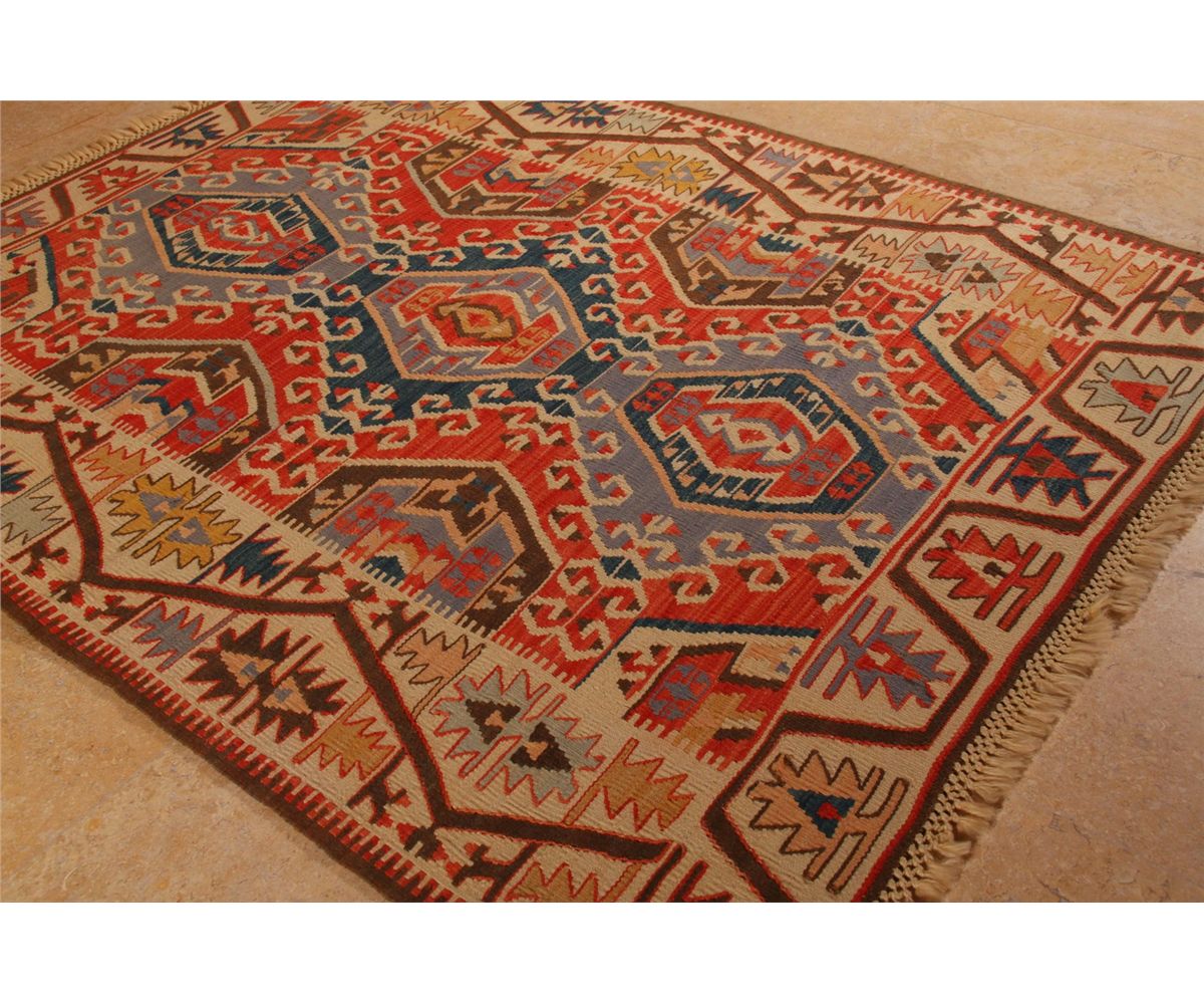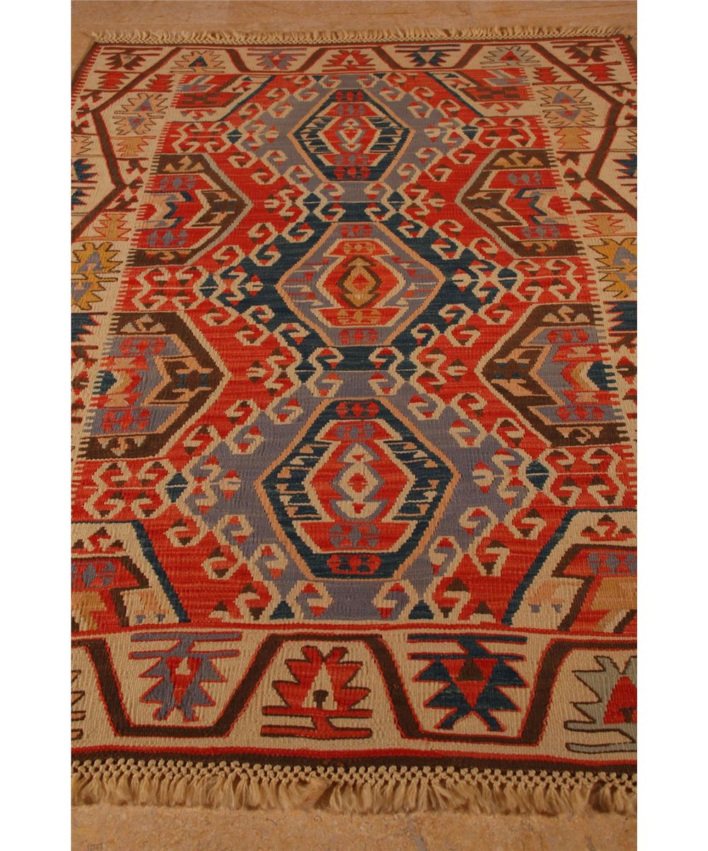 Kayseri, Three Medallion, Central Turkey, 100% handspun wool, mixed with 10% angora, vegetable dye, color fast [ Width (ft/in)=4' , Height/Length (ft/in)=6' , Depth (in)= 0, Weight (lbs)=6 ]