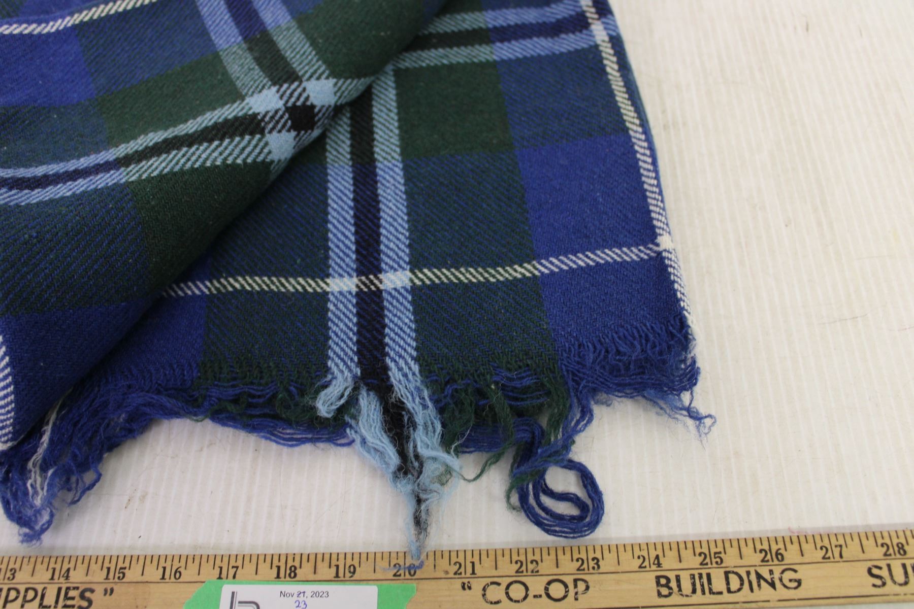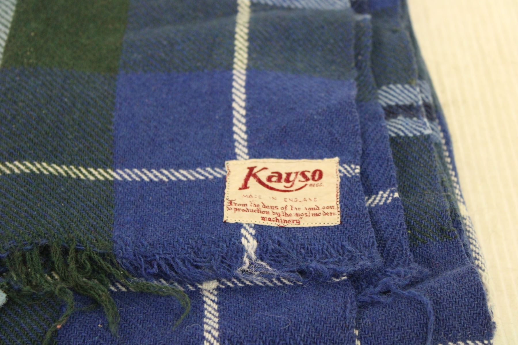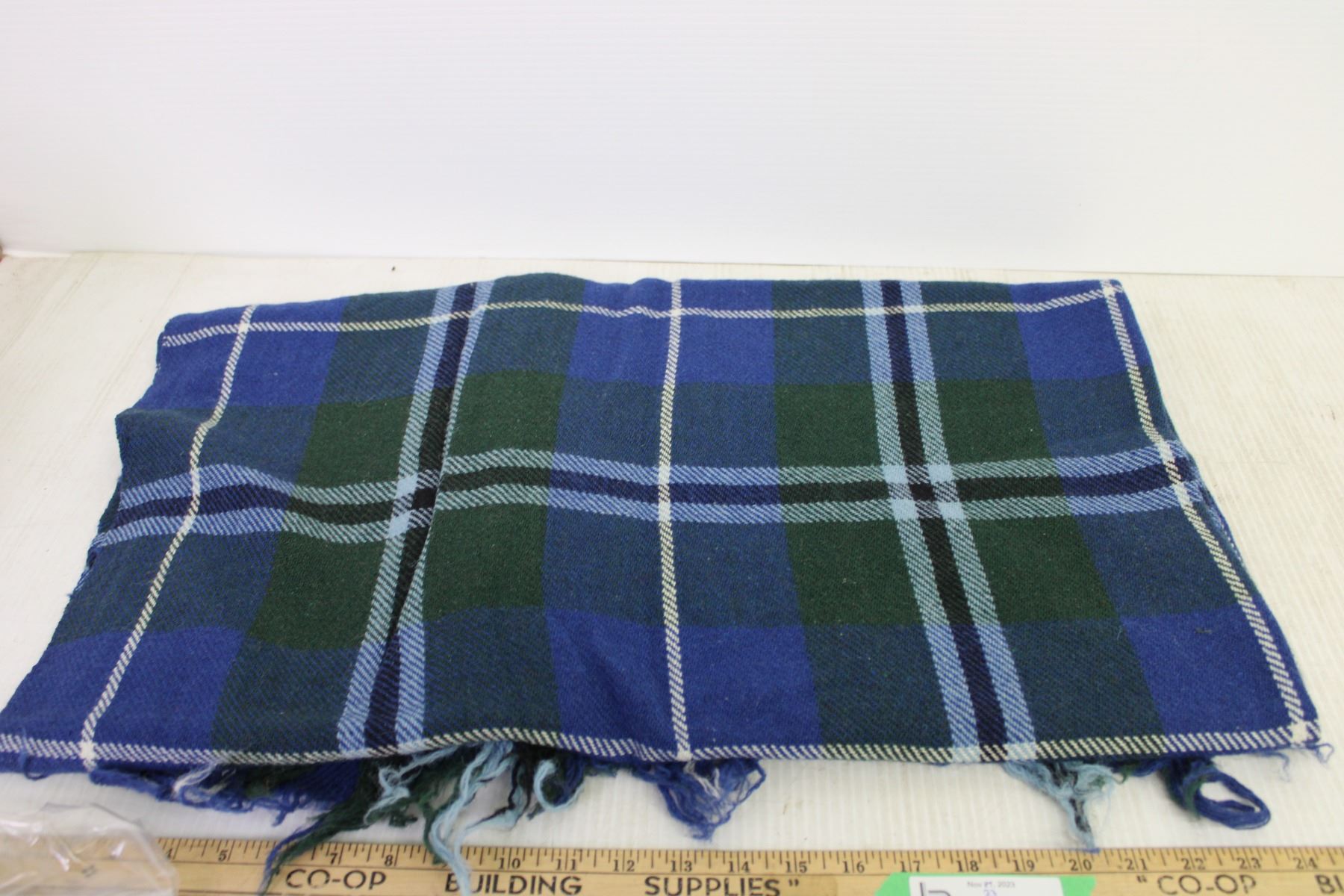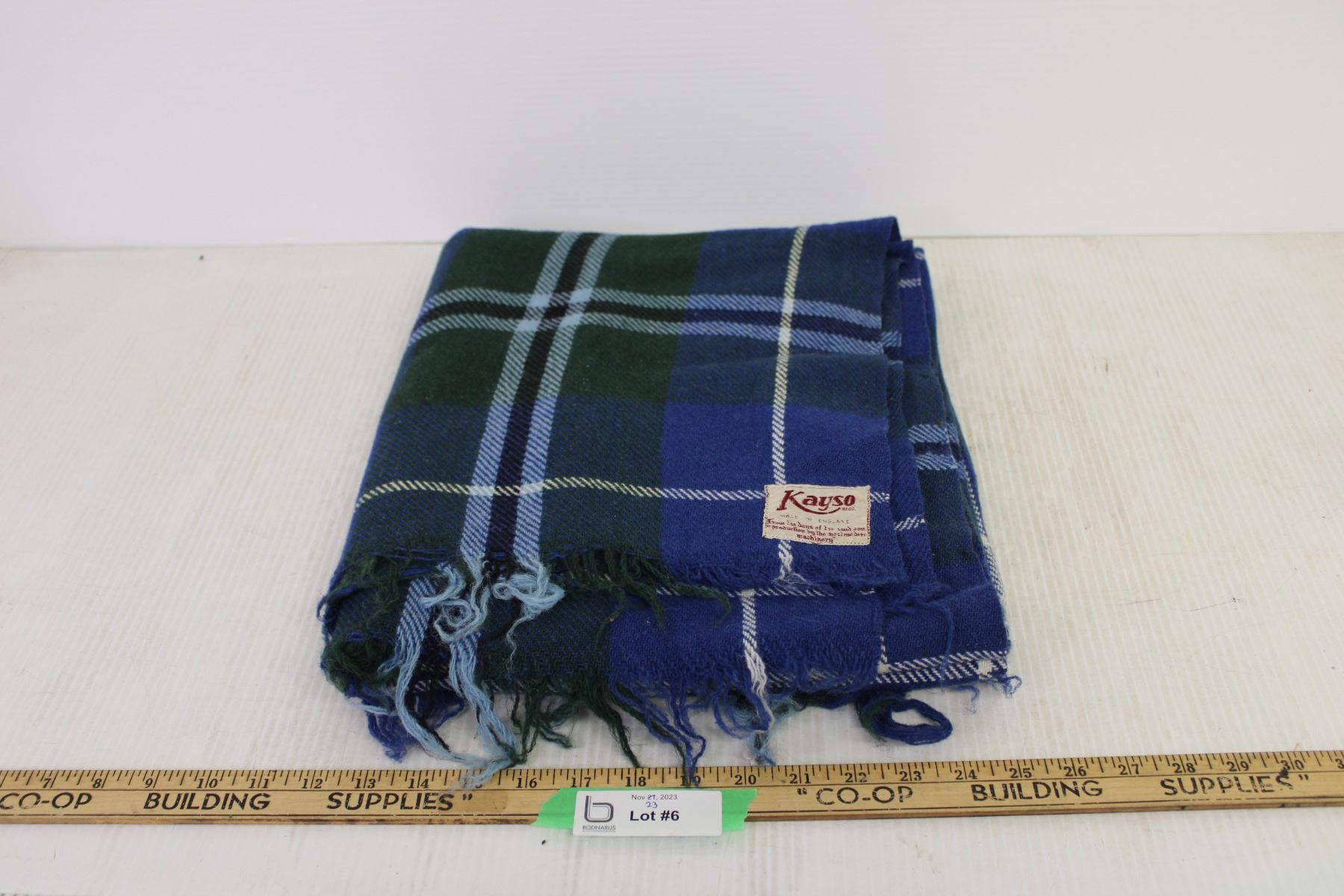 “Kayson,” wool blanket, made in England. The tartan looks like the “Mckay” clan tartan.