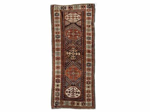 Wool, ghiordes knotting 250 x 113 cm damaged, restored late 19th century