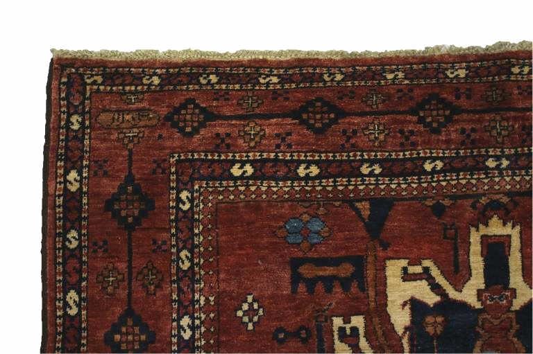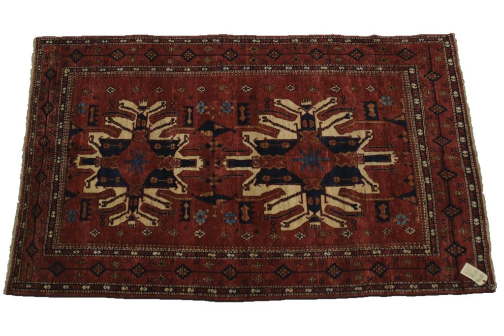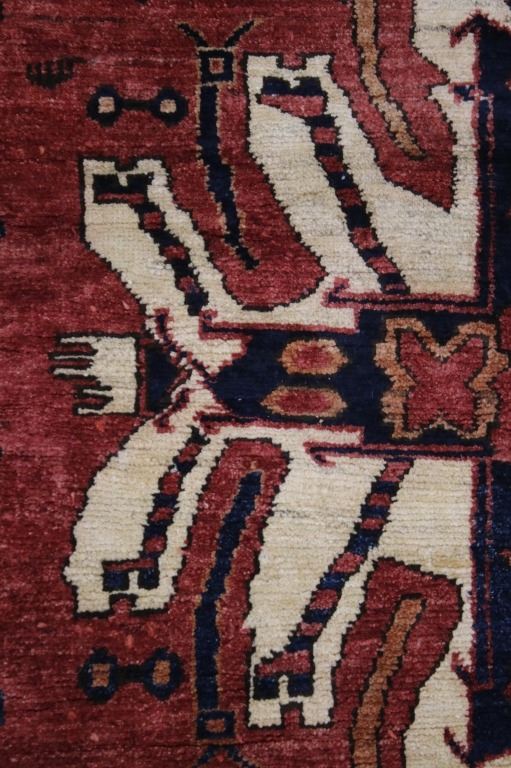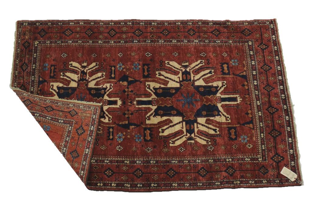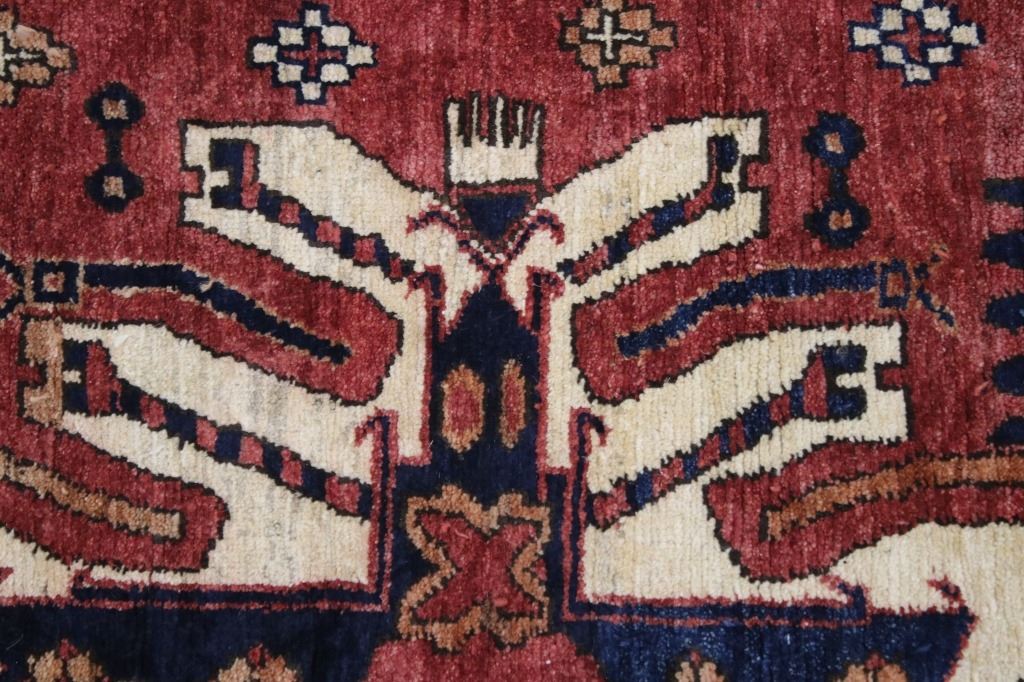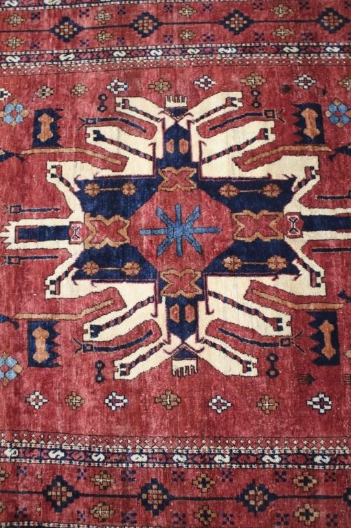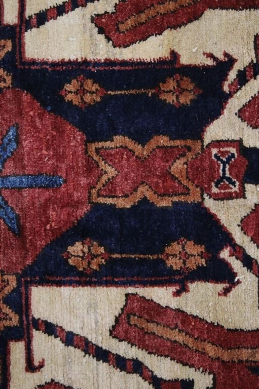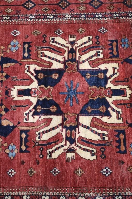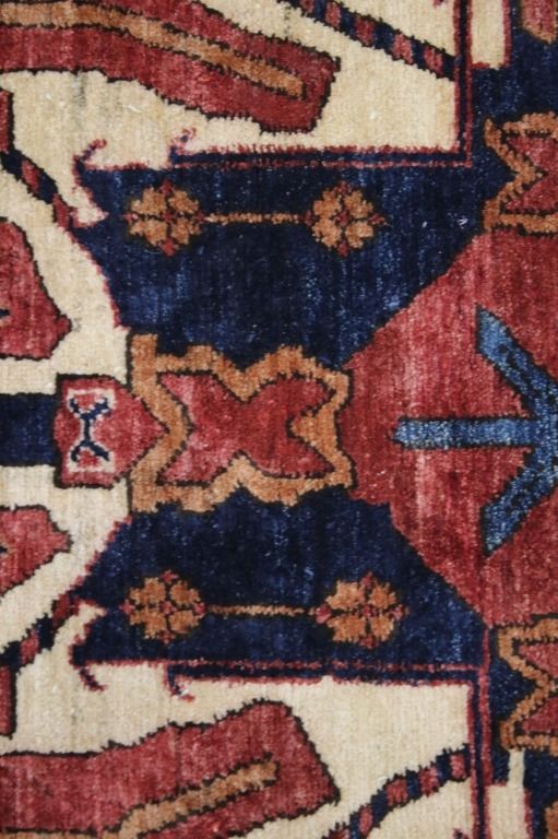 Featured in this lot is a hand-knotted, Persian Kazak, wool runner rug, originating from the 1930's. The rug displays a fine detailed design, bright colors, and a tight weave. Kazak style rugs are similar in design to Heriz rugs, with a colorful and bright coloration. The rugs were traditionally woven by various tribes located near the Caucasus Mountains. This rug displays a geometric border with a medallion across the center. The piece shows a red base with colors of tan, orange, blue, and navy blue. The piece shows a white fringe at each end. The piece is in good condition and shows little wear and use. The rug measures 61" wide by 97" long.