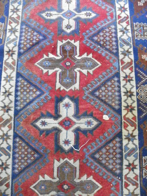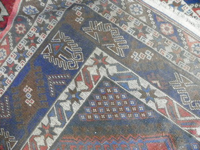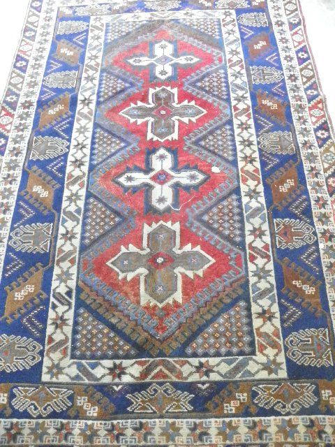 Navy & red. Approx. 5' x 8'. Please read our terms of sale.