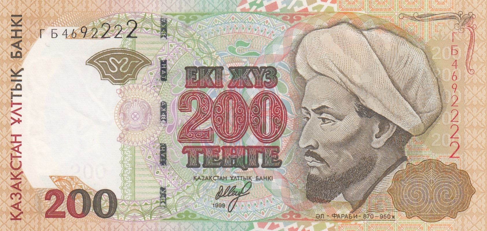 Kazakhstan, 200 Tenge, 1999, UNC, p20br/Al-Farabi portrait at right, serial number: 462222
