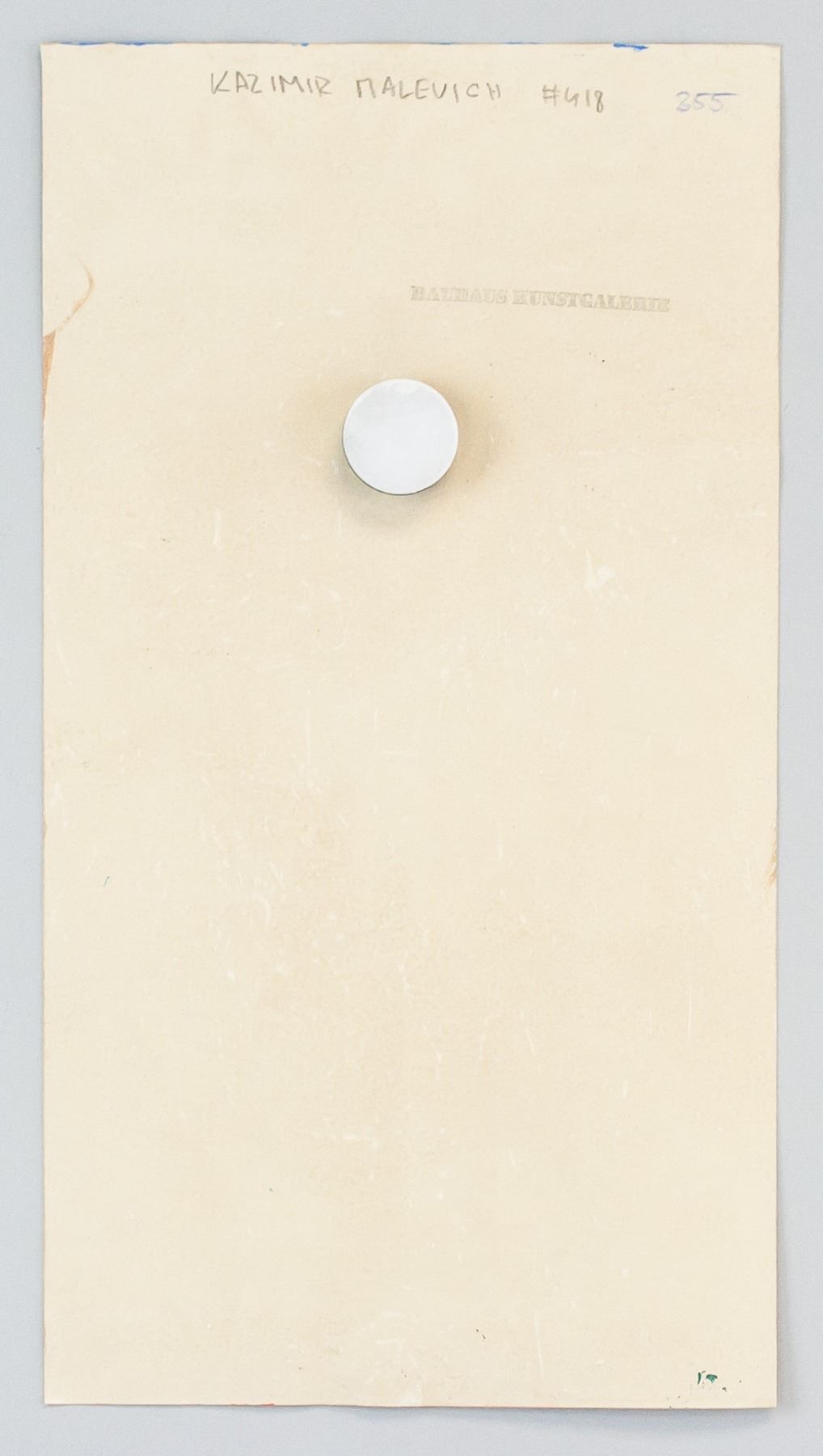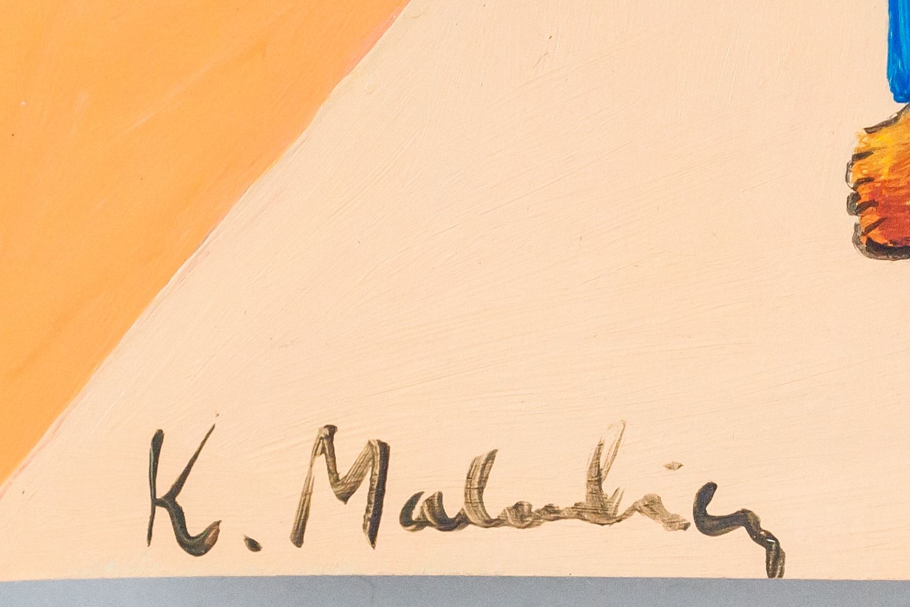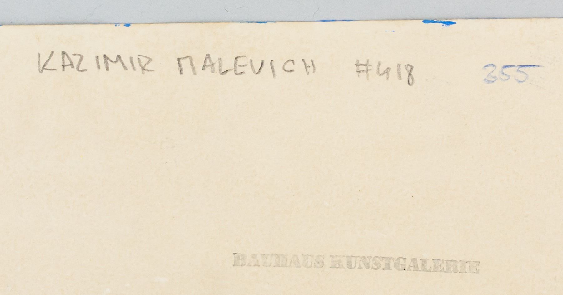 Gouache on paper. Featuring a futurist composition of a human-like figure against a geometric background. Signed "K. Malevich" in the bottom left corner. Kazimir Malevich #418 355" inscribed on verso. Stamped with "BAUHAUS KUNSTGALERIE" on verso. Attributed to Kazimir Malevich (1879-1935, Russian). 29.5 x 16 cm (11.75 x 6.25 in). Provenance: This lot carries limited provenance from a Southern Ontario estate