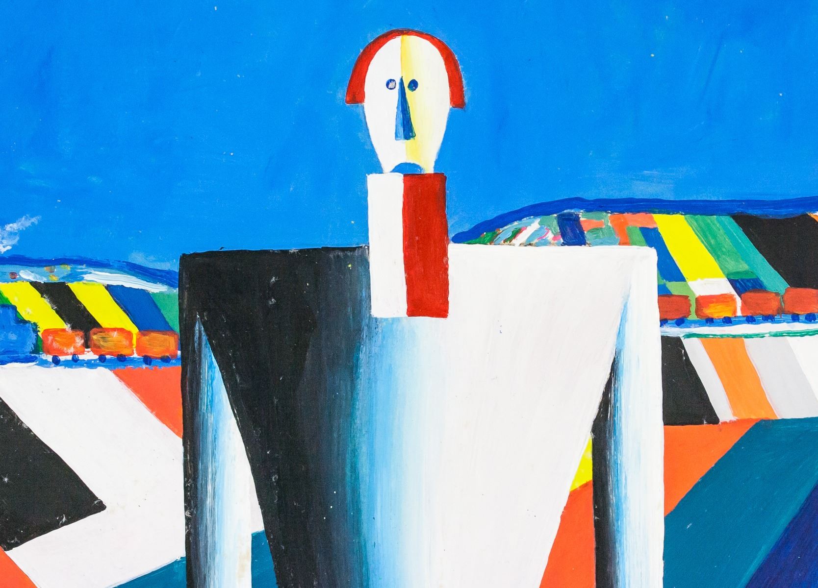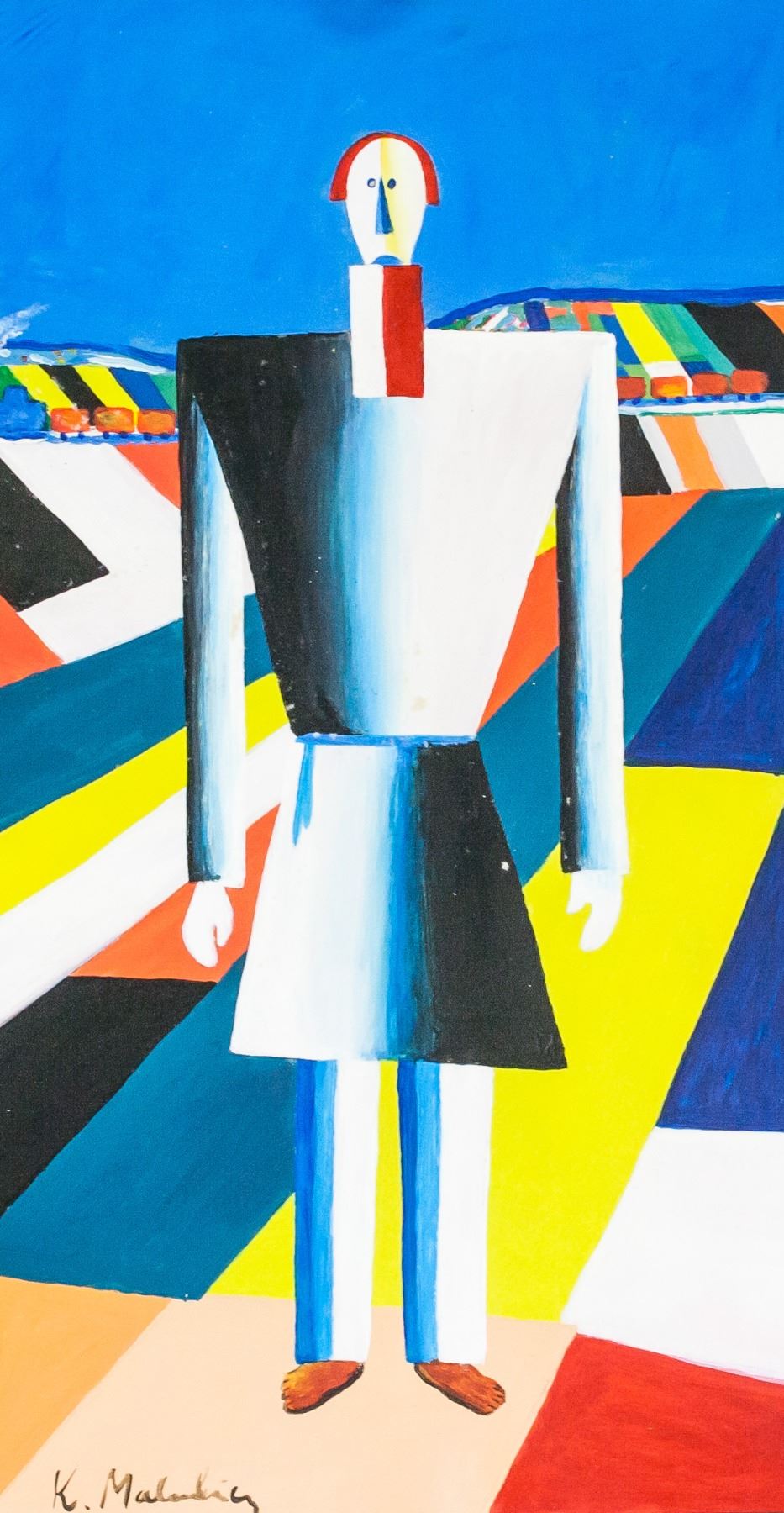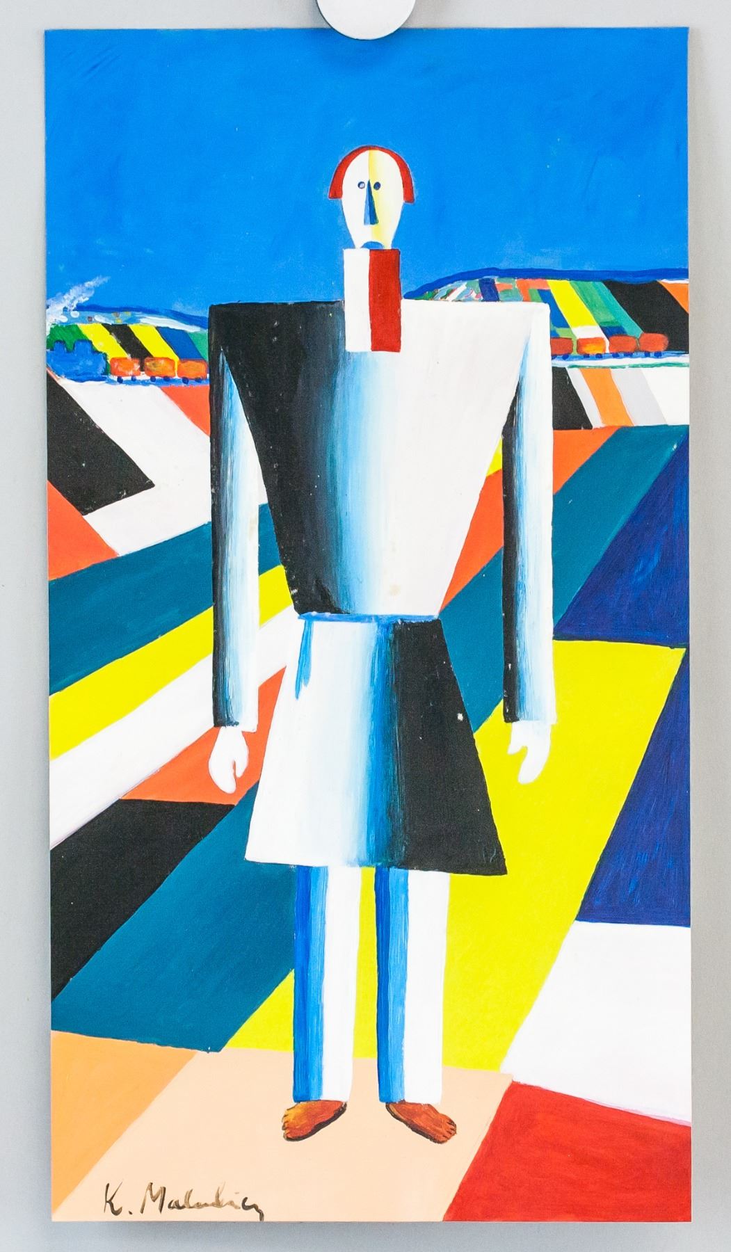 Gouache on paper. Featuring a futurist composition of a human-like figure against a geometric background. Signed "K. Malevich" in the bottom left corner. Kazimir Malevich #418 355" inscribed on verso. Stamped with "BAUHAUS KUNSTGALERIE" on verso. Attributed to Kazimir Malevich (1879-1935, Russian). 29.5 x 16 cm (11.75 x 6.25 in). Provenance: This lot carries limited provenance from a Southern Ontario estate