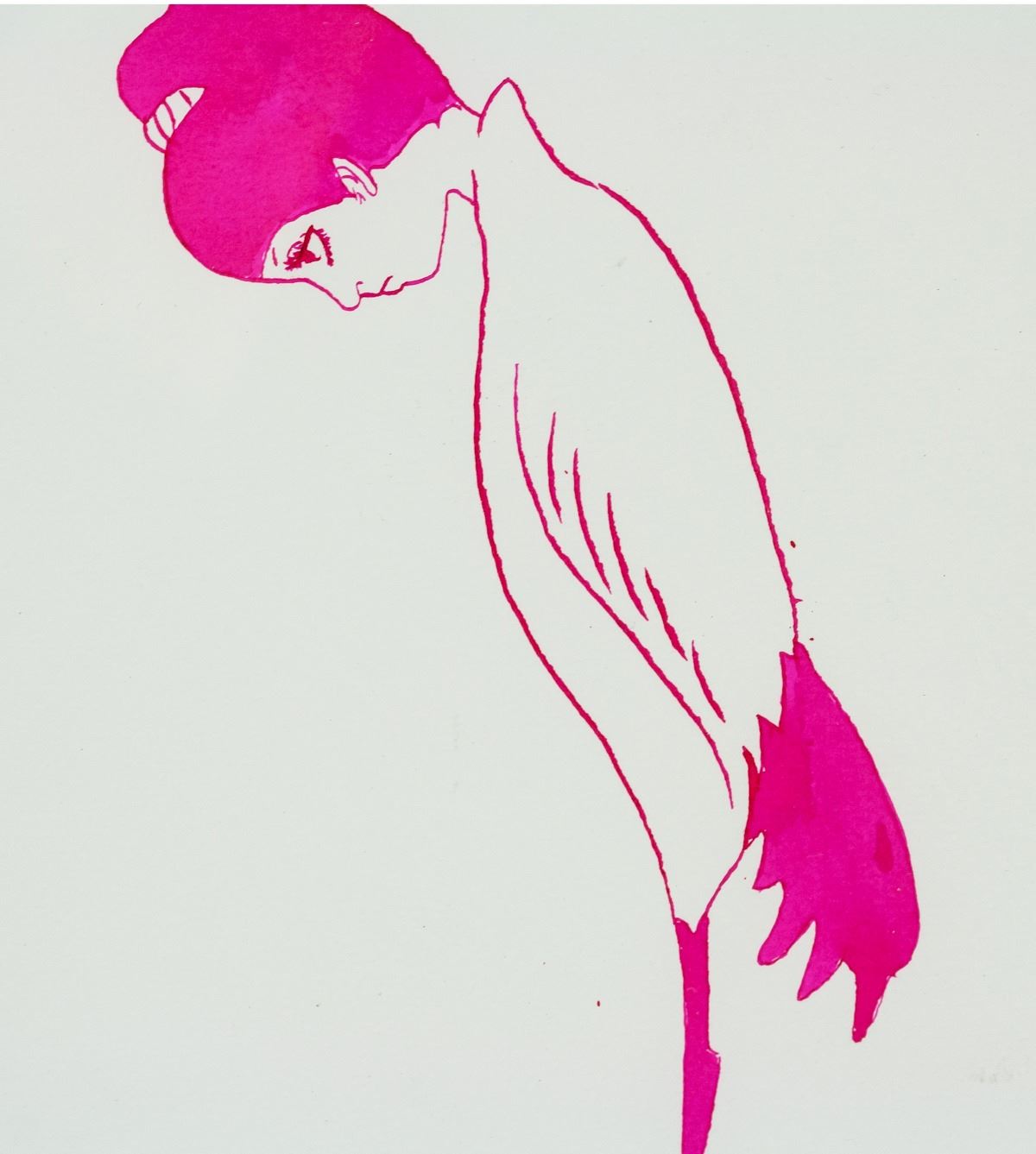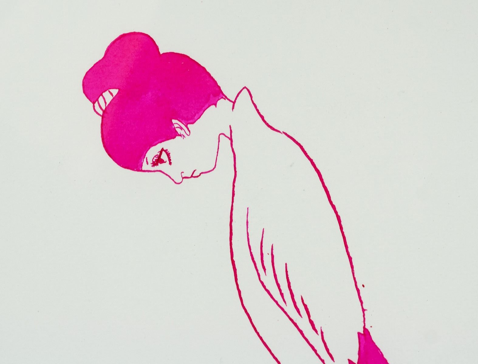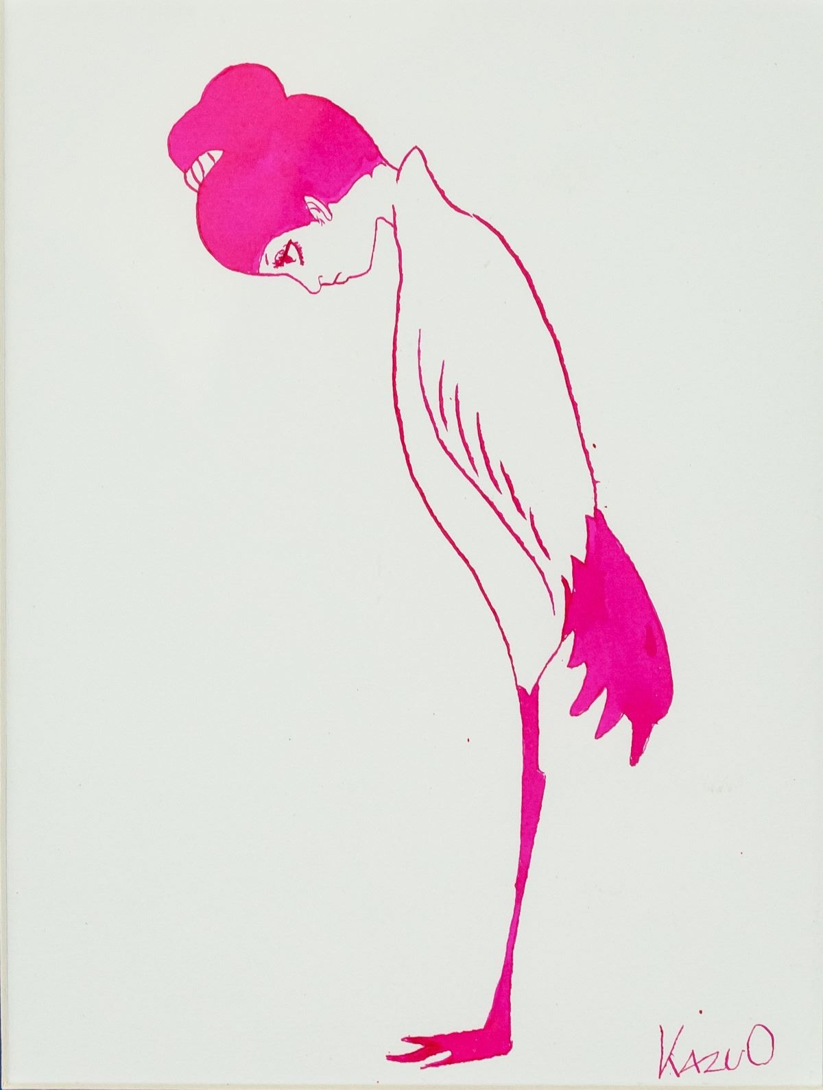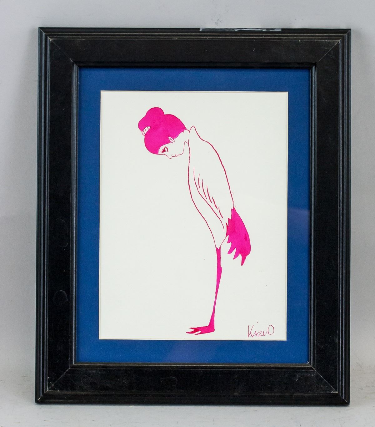 Ink on paper. Featuring a portrait of a woman with bird feet. Signed Kazuo on the lower right corner. Attributed to Kazuo Kamimura (1940-1986, Japanese). 20 x 15.5 cm (7.9 x 6.1 inches). Frame size: 31 x 26 cm (12.2 x 10.2 inches). PROVENANCE: Southern Ontario estate
