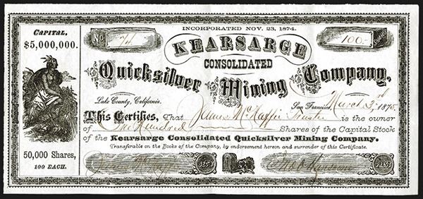 San Francisco office, Lake County, California. 100 shares at $100 per, Indian on cliff, IU, EF.