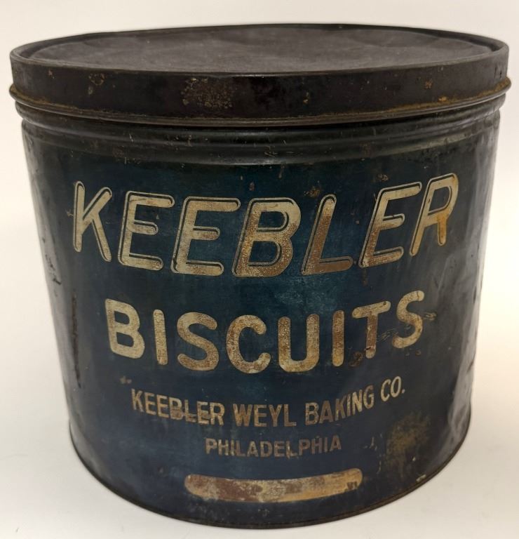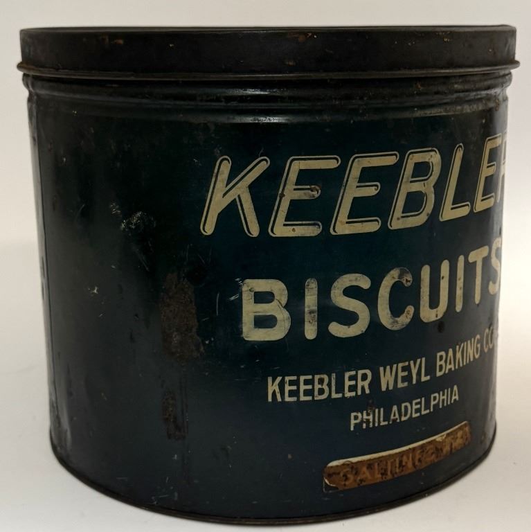 Item/Description: Featuring a vintage Keebler & Weyl Baking Co. Philadelphia tin can for saltine crackers from the mid-20th century. (Vintage Kitchen Decor, Vintage Advertising)