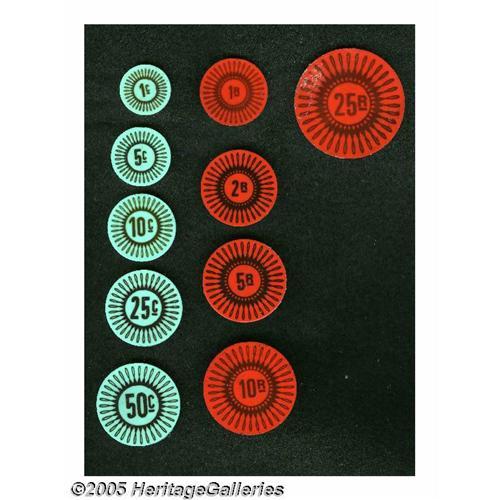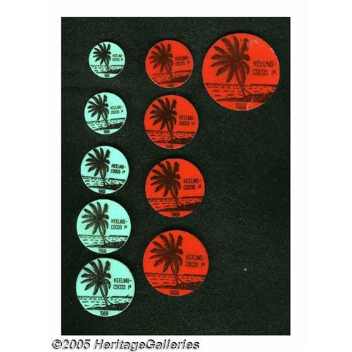 Keeling Cocos. Complete 1968 Plastic Token Set, ten tokens includi Complete 1968 Plastic Token Set,