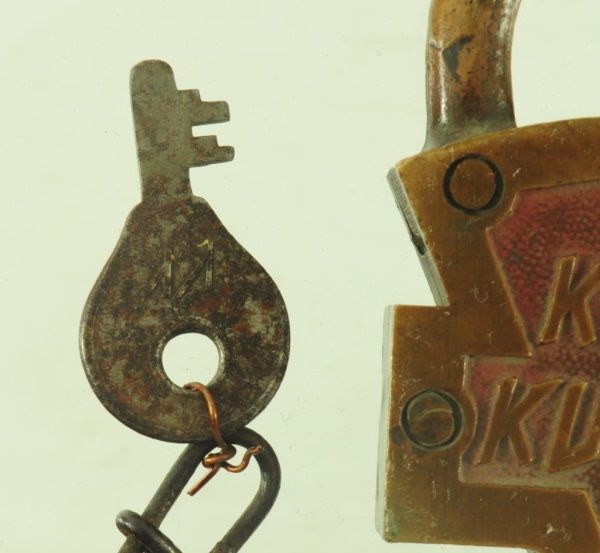 Keen Kutter Tools S/S Painted Metal Sign, Randals Lumber-Hardware Lemesa (9-3/4" x 27-1/2"); E.C. Simmons Keen Kutter Padlock With Key (4" x 2 1/4").