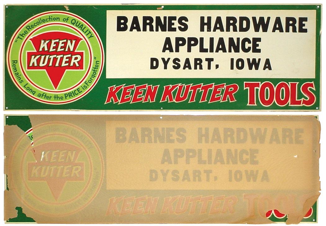 Keen Kutter Tools signs (2) from Barnes Hdwr-Dysart, IA, new old stock in Exc cond, 10"H x 27"W.