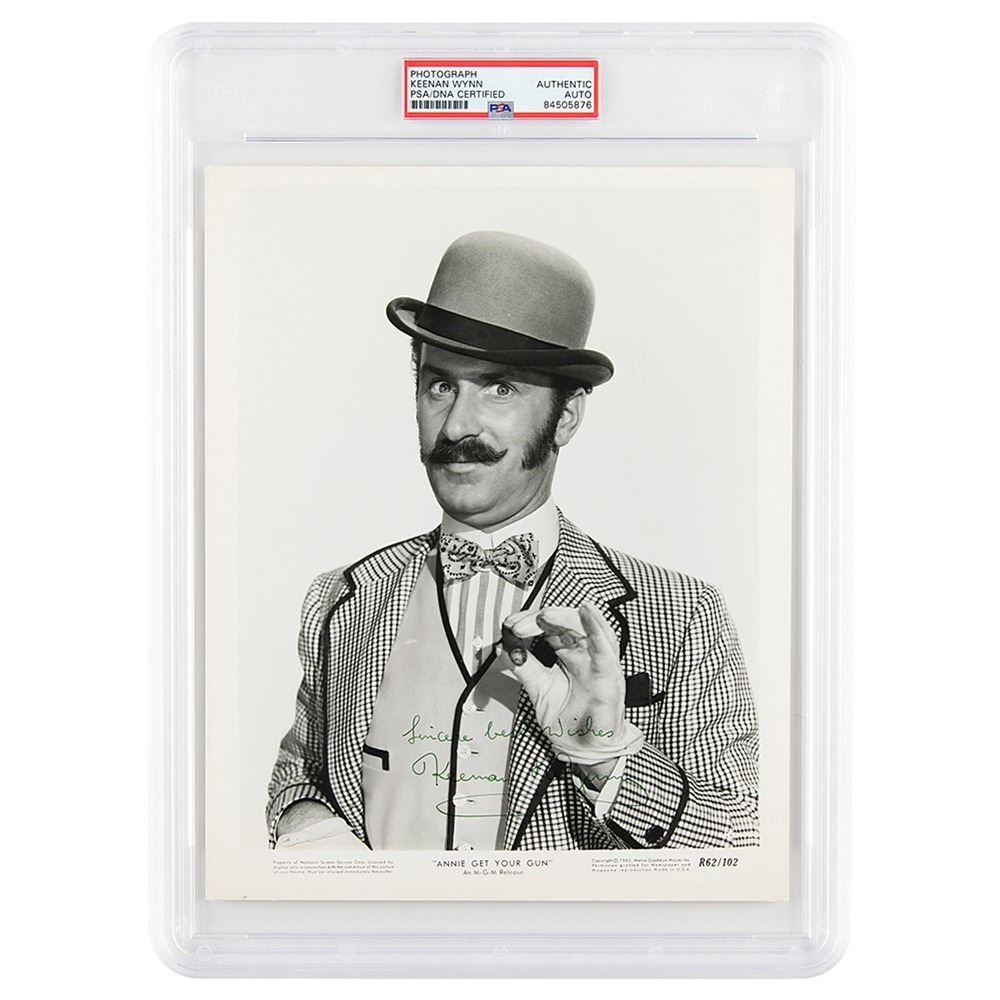 Vintage glossy 8 x 10 photo of Wynn as Charlie Davenport in the 1950 musical Annie Get Your Gun, signed in felt tip, "Sincere best wishes, Keenan Wynn." In very good to fine condition, with creasing to the upper left edge. Encapsulated in a PSA/DNA authentication holder.