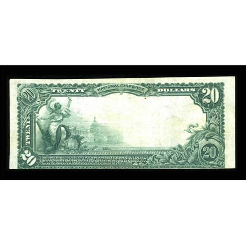 <B>Keeseville, NY</B></I> - $20 1902 Plain Back Fr. 653 <B>The Keeseville NB</B></I> Ch. # (E)1753<BR> Most of the later notes we've seen from this bank have been lower grade pieces, but this Blue Seal is a happy exception. Sharp <B>Very Fine-Extremely Fine.</B></I><BR><I>From The Thomas A. Bergin Collection</B></I><BR><BR><b>Shipping:</b> Coins & Currency (<a target="_blank" href="http://www.heritageauctions.com/common/shipping.php">view shipping information</a>)