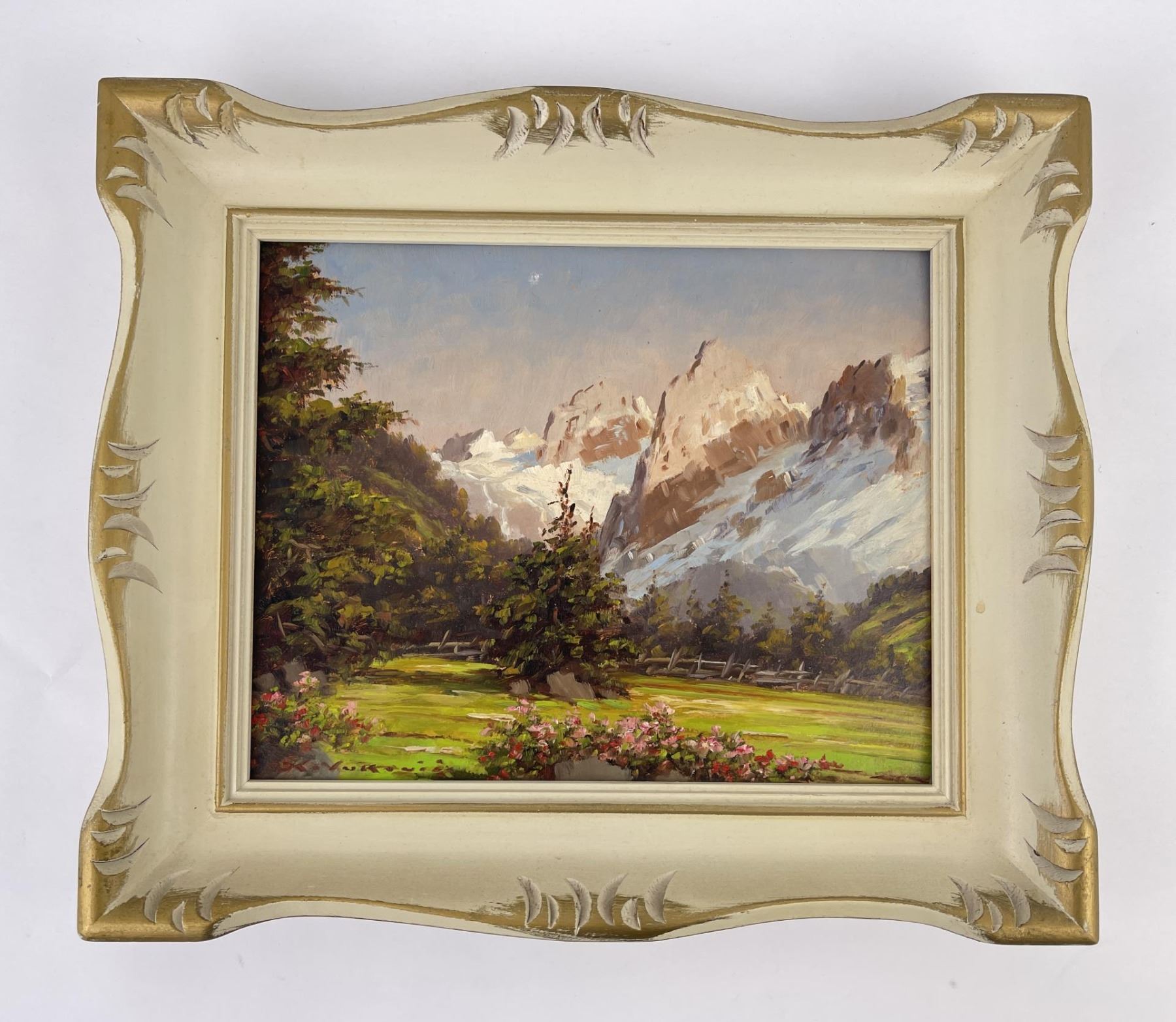 Mountain scene in Austria. 11 1/2" by 13 1/2" framed. Keist Vakovic (Born 1920) is active/lives in Czech Republic. Keist Vakovic is known for Still life and landscape painting.