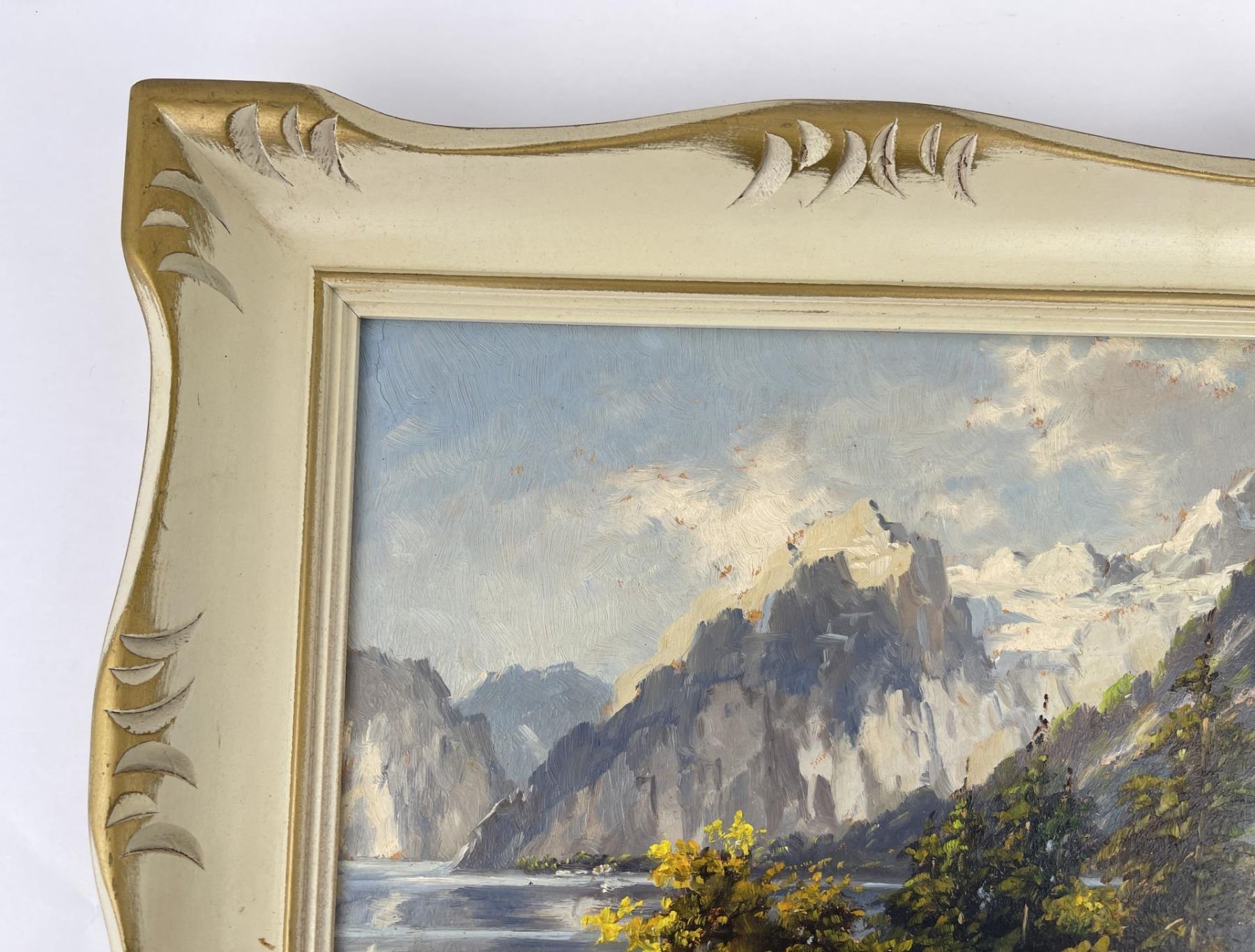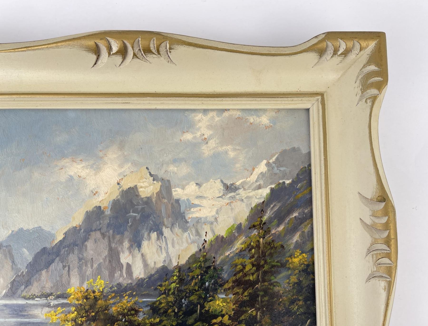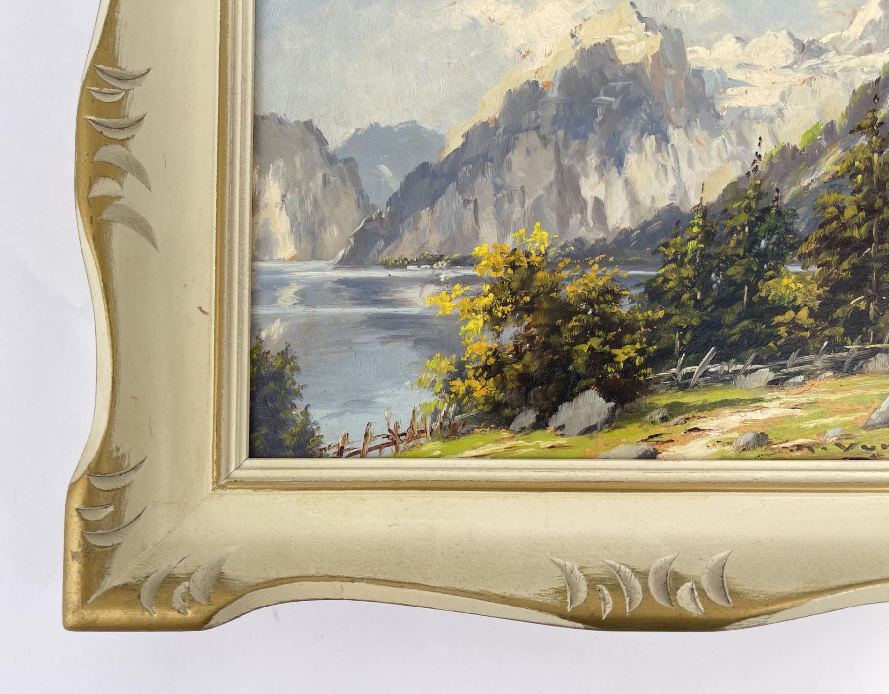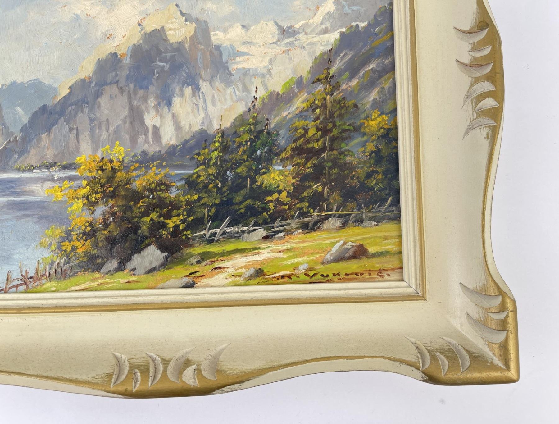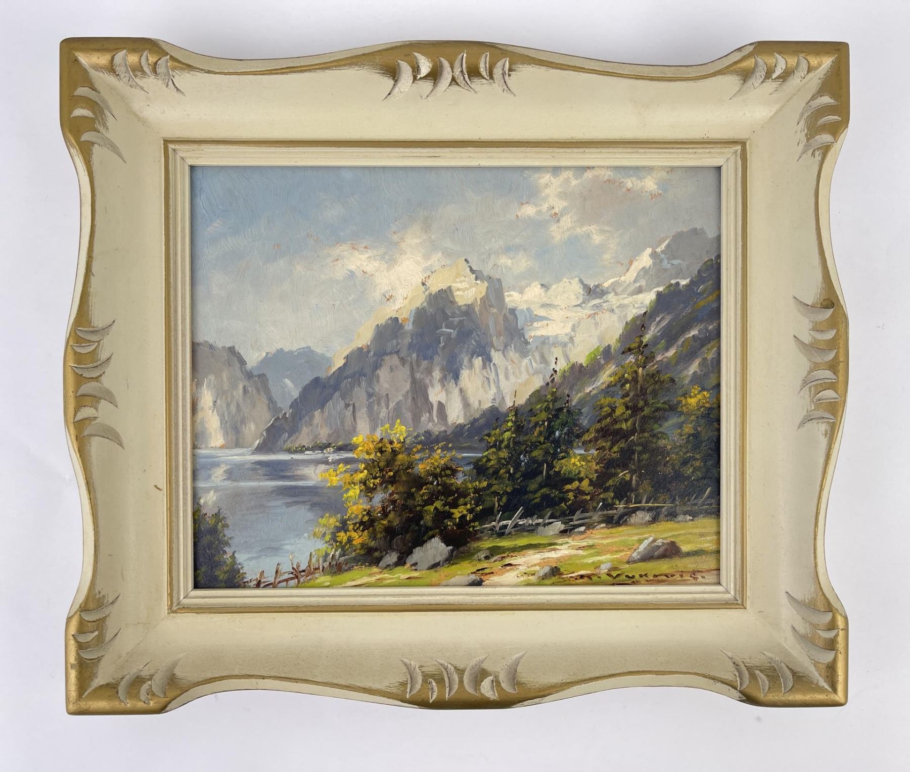 Mountain scene in Austria. 11 1/2" by 13 1/2" framed. Keist Vakovic (Born 1920) is active/lives in Czech Republic. Keist Vakovic is known for Still life and landscape painting.