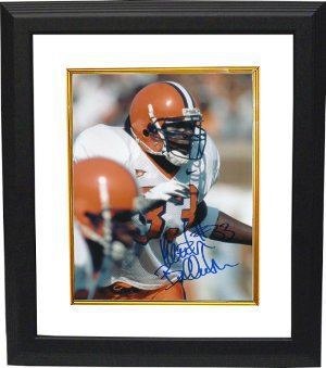 Keith Bulluck played college football at Syracuse University. He played strong safety, outside linebacker and middle linebacker. As a senior in 1999 he led the Big East in tackles with 138 and received the Bill Horr Award, which is given to Syracuse’s most valuable player. He finished his career with 375 tackles, six sacks, three interceptions, three forced fumbles and six fumble recoveries. Keith Bulluck has hand autographed this Syracuse Orange Color 8x10 Photo. Private Signing December December 14th, 2005. Custom White Mat and Premium Black Color Frame as shown. Certificate of Authenticity from Athlon Sports.