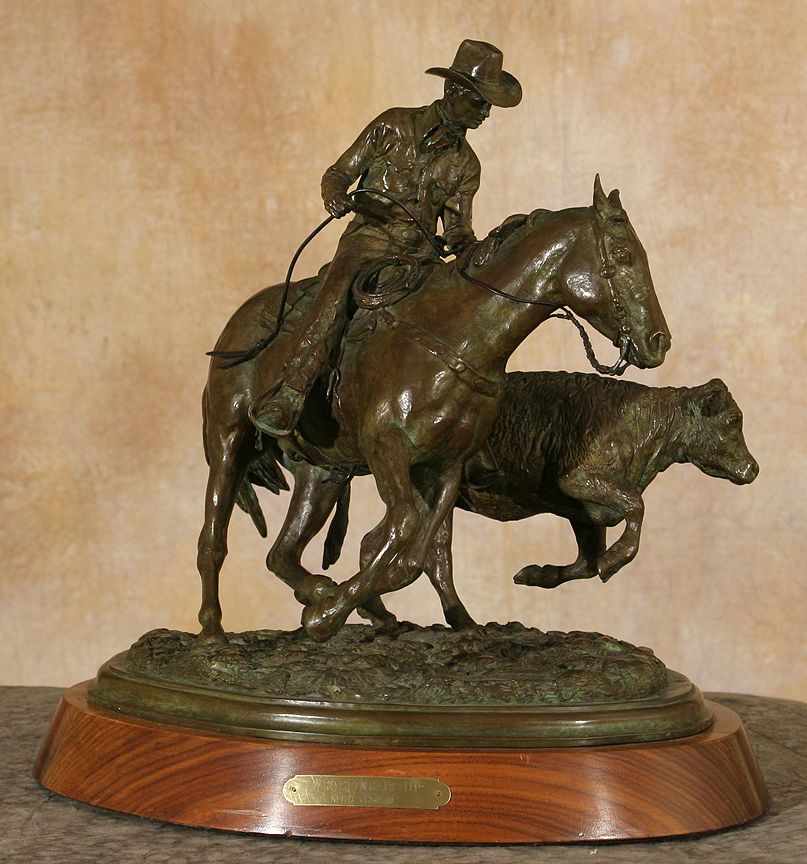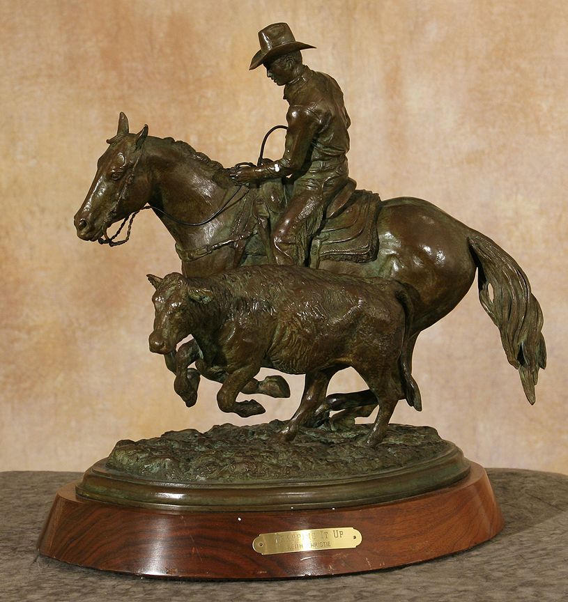 Keith Christie (b. 1935). Wrapping It Up. 15" x 15" x 12" bronze #10/50. Signature inscribed: KEITH CHRISTIE © 1985. (est. $2,500-3,500). CONDITION REPORTS: www.auctioninsantafe.com/docs/cr2012.pdf
