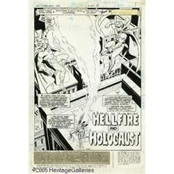 <B>Keith Giffen and Wally Wood - All-Star Comics #61, page 1 Original Art (DC, 1976).</B></I> Once, he worshipped the Justice Society of America, now he craves their destruction! The man-monster self-named Vulcan, former NASA astronaut known as Christopher Pike, takes aim at the JSA in "Hellfire and Holocaust," written by Gerry Conway. Penciled by Keith Giffen and inked by Wally Wood, it's a fire-blasted bonanza starring two of the JSA's most powerful members, Dr. Fate and Green Lantern. The art is 10" x 13.5", and shows some slight aging and white-out usage, still this hellacious art piece is in Very Good condition.