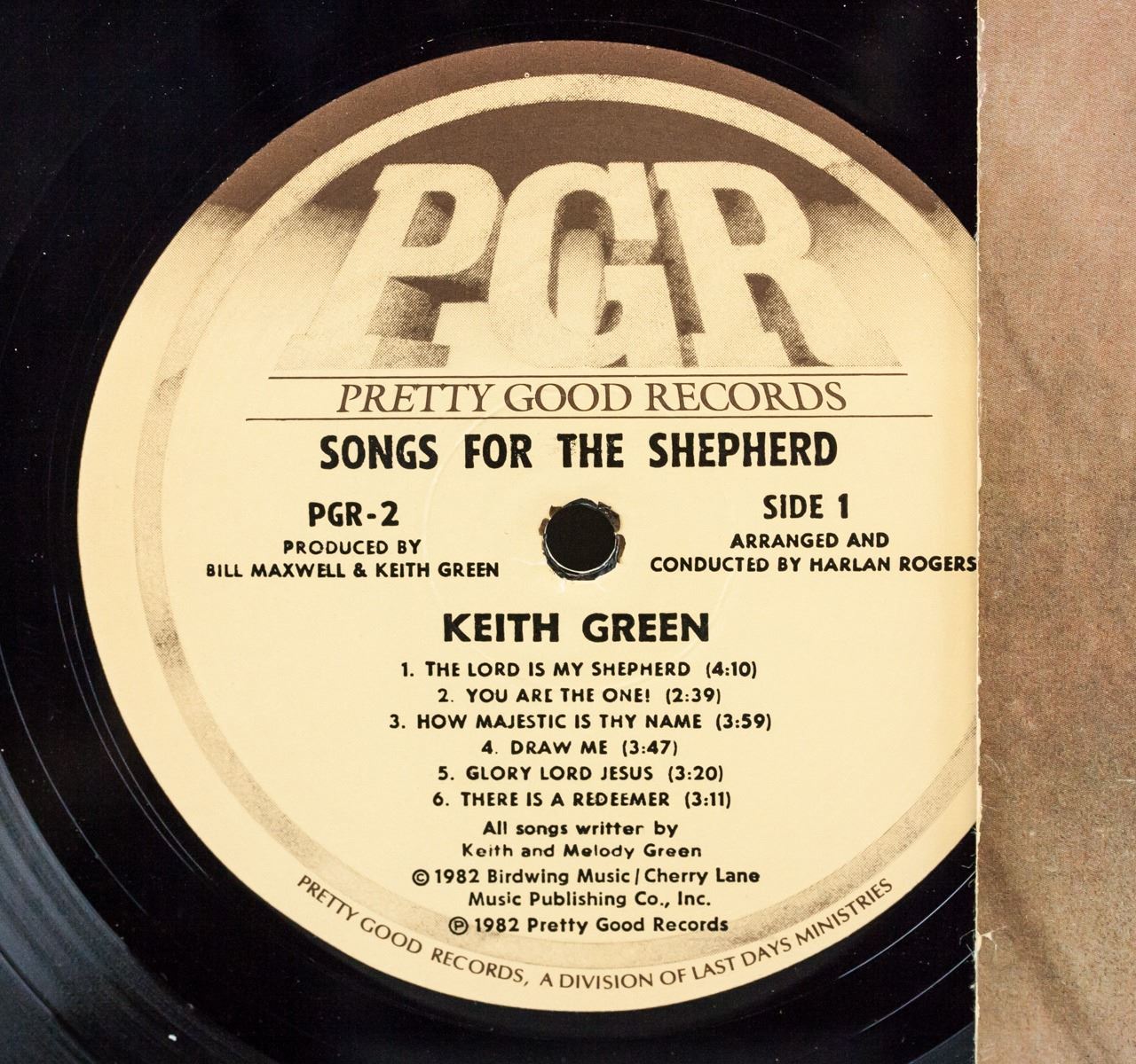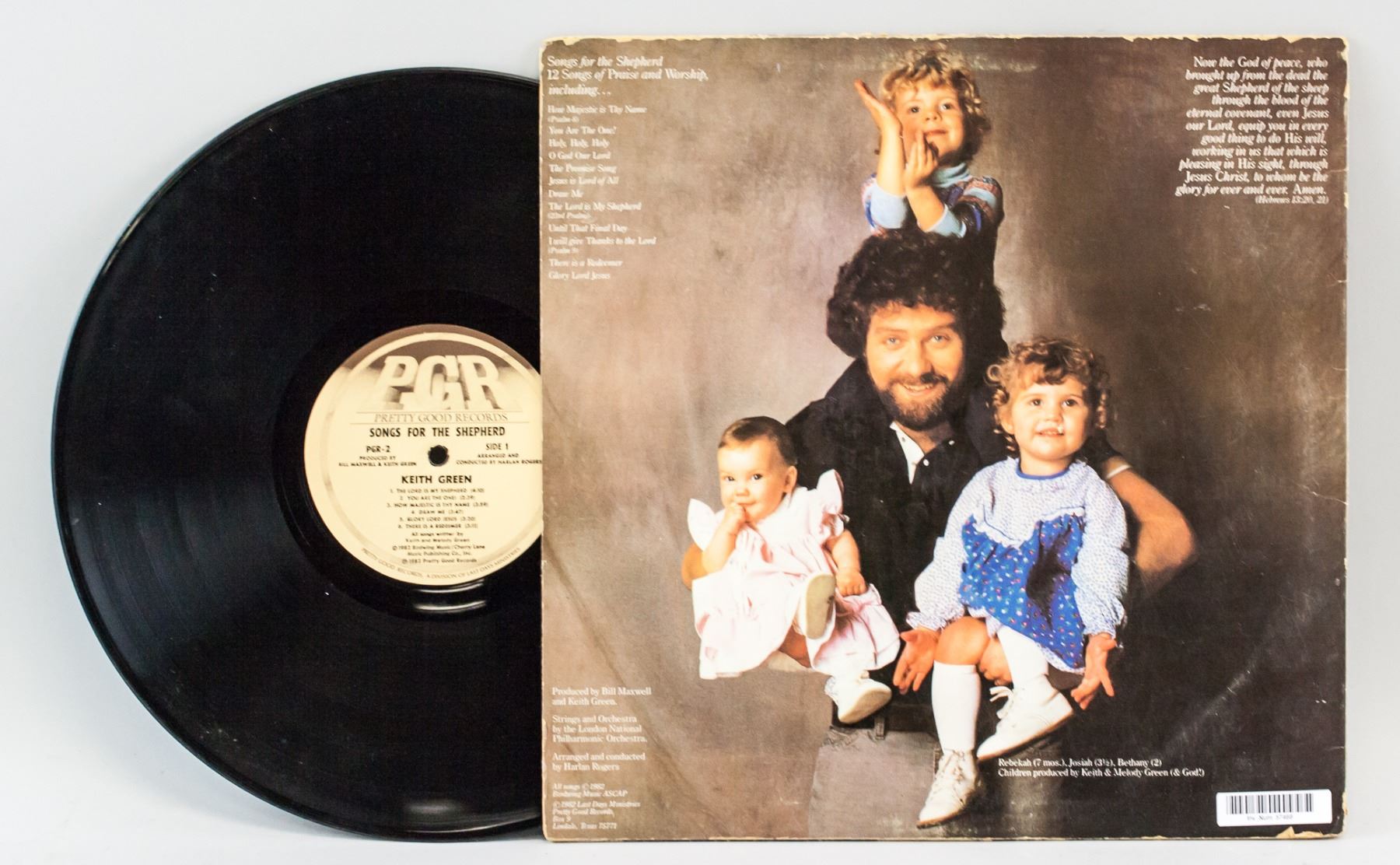 Vinyl disc titled "Keith Green / Songs for the Shepard". Includes slip cover. 30 x 30 cm (12 x 12 in). May have scratches or blemishes on surface.